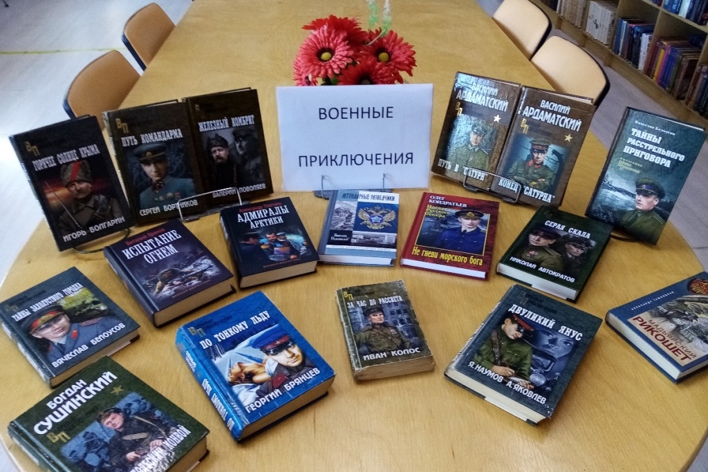 Серия военно-приключенческой художественной и документальной прозы, представленная на выставке «Военные приключения» в библиотеке №12, повествует о событиях Второй мировой и Великой Отечественной войн, о деятельности военной разведки и следственных органов, о подвигах дедов и прадедов, о смерти, любви и надежде, о горе и радости, о желании жить и самопожертвовании ради других — словом, о том, какими были эти войны и чем пришлось за них заплатить.