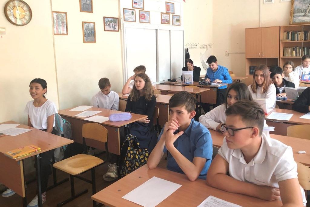 14 сентября в 7 «А» классе школы № 64 было организовано занятие в рамках программы «Читаем И.У. Басаргина», на котором школьники вспомнили, что И.У. Басаргин родился в маленьком таежном селении, где тайга подступала к околице, и знание таежной жизни, проникновение в её особый мир он впитал с детства от своего деда, старшего брата, дядей; познакомились с небольшой выставкой книг писателя. В ходе просмотра электронной презентации «Яркая палитра оттенков осенней природы в произведениях И.У. Басаргина», знакомились с трудными словами, их значением; с словесным и логическим ударением, интонационными средствами, а затем выразительно прочитали первую часть рассказа И.У. Басаргина «Горит тайга», в котором великолепно изображена яркая «приморская осень самоцветов», у которой, как подметил писатель, «для каждого дерева, для каждого листочка – свой редкий камень».