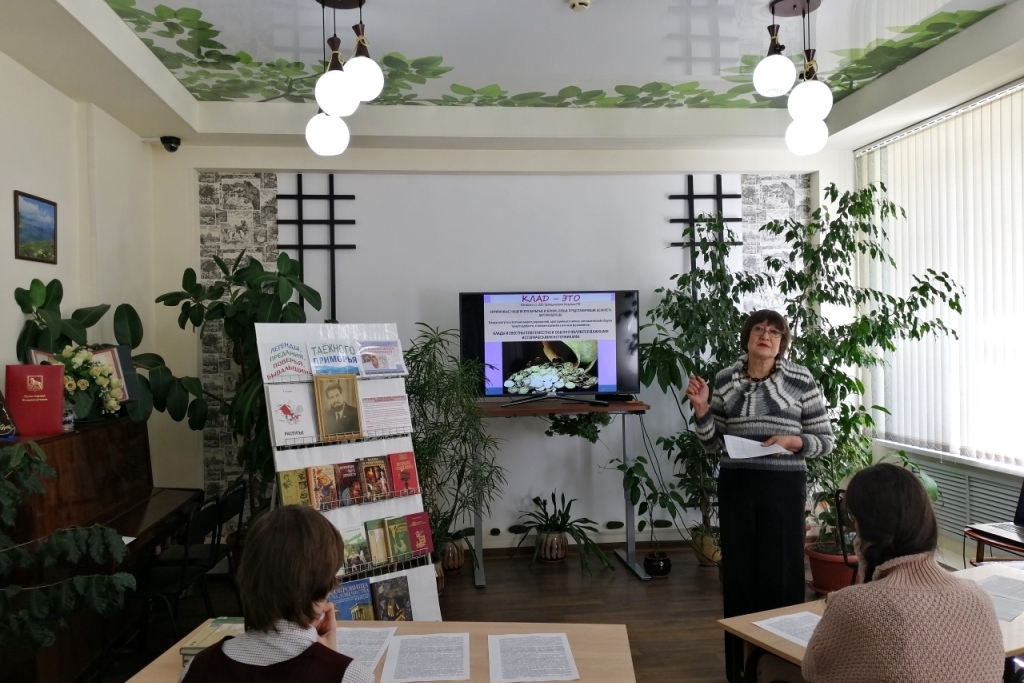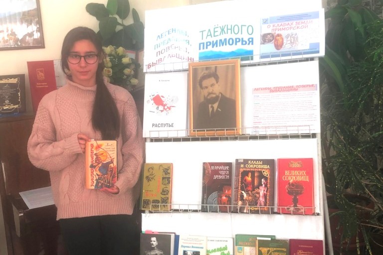 9 октября занятие с учащимися 8 «А» класса МБОУ «СОШ № 57» в рамках программы «Читаем И.У. Басаргина» было посвящено кладам и кладоискательству. В начале занятия состоялось знакомство с изданиями, представленными на книжной выставке. Из словаря С.И. Ожегова узнали, что клад – это зарытые, спрятанные где-нибудь ценности», а страницы прекрасно иллюстрированного тематического сборника статей «Клады и сокровища» (составитель Екатерина Юрьевна Горбачева) познакомили с историей кладоискательства, рассказали об осуществлении поисков сокровищ по закону. Интересно, что в эту книгу о «100 самых-самых», включена и статья о гибели 113 лет назад (в октябре 1906 г.) в Уссурийском заливе Приморья (в бухте Суходол), парохода «Варягин» со значительными ценностями на борту, и клад этот до сих пор не поднят. Ребята с интересом прослушали информацию о книгах С. Балабина «Золотая империя», Е. Лешок «Тайны пещер Сихотэ-Алиня», Г. Пермякова «Тропой женьшеня» и др. и цитаты из них.