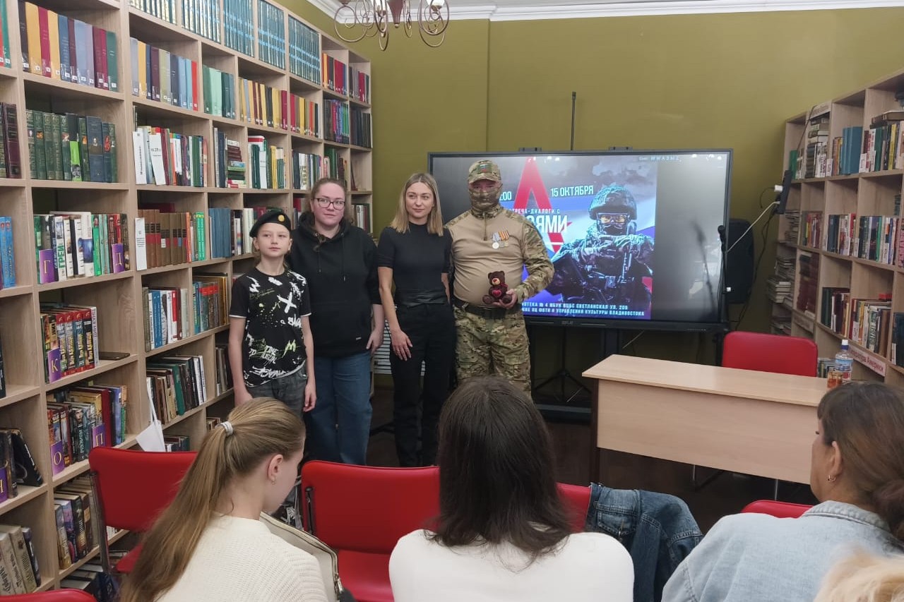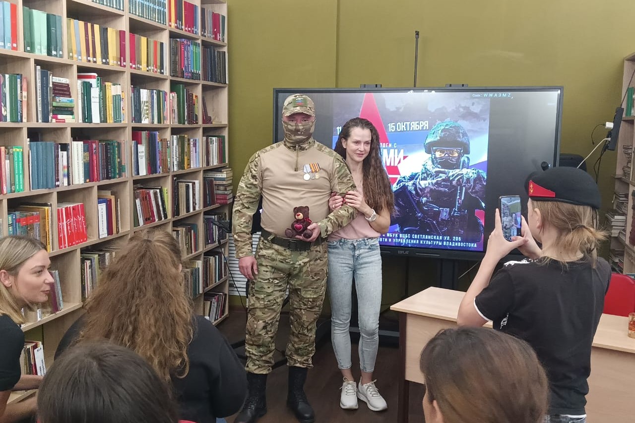 15 октября в библиотеке №4 состоялась встреча жителей города с ветераном специальной военной операции, бойцом с позывным «Балу». Организаторы мероприятия НВП Джамбо» при поддержке ВЦ ФВТИ и Управления Культуры администрации города Владивостока.