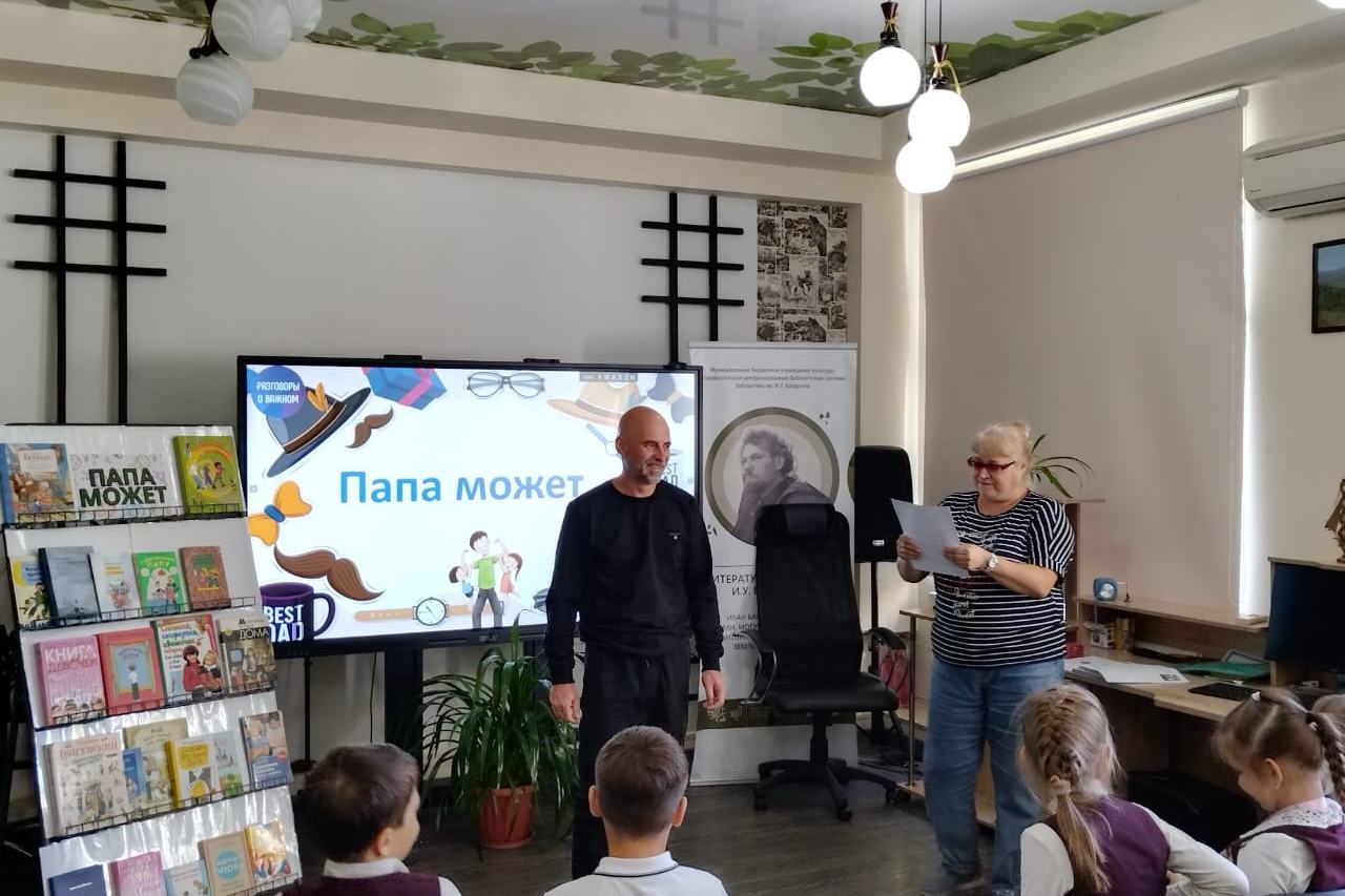 Новый учебный год вновь собрал учащихся 3 «Б» класса СОШ № 57 в библиотеке им. И.У. Басаргина. Главными героями встречи стали папы. Отец – глава семьи. Он является опорой семьи, её цементирующим началом. Крепкая, дружная семья – это броня. Быть хорошим отцом — самая ответственная и нужная работа в жизни мужчины. Стать примером для сына и добрым волшебником для дочери. Научить, рассказать, защитить, объяснить и сделать всё это с любовью и терпением — такое может только папа. И ребята рассказали о том, что может папа, каким должен быть отец, почему важно, чтобы отец участвовал в воспитании и сыновей и дочерей.