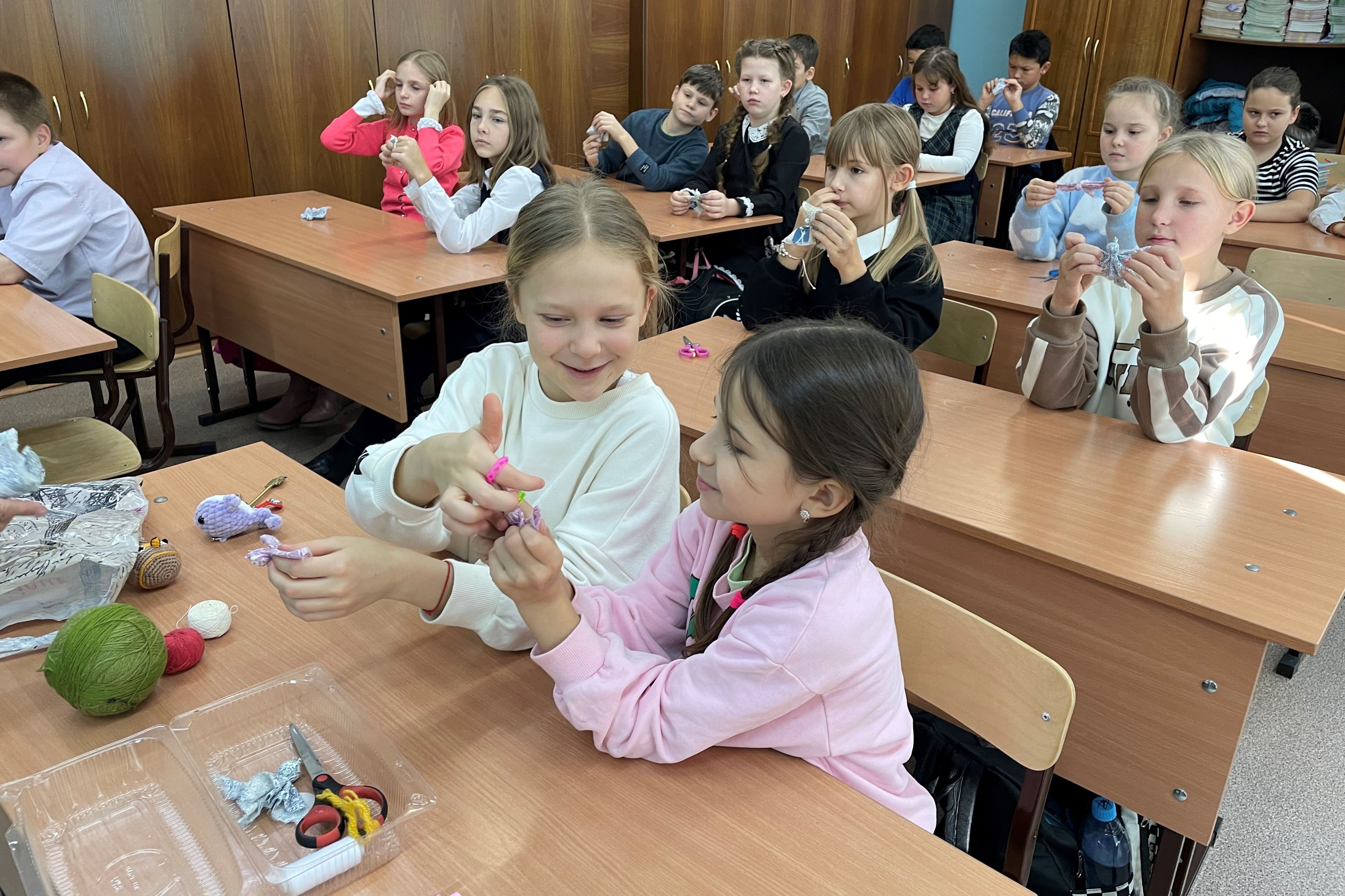 10 ноября сотрудники детской библиотеки № 7 провели познавательный мастер-класс для учащихся 3 «а» класса МБОУ «СОШ №59». Несмотря на название «Синичкин день», праздник посвящен не только синицам, но и остальным птицам, которые остаются на зимовку в регионах России. А синичка стала символом, потому что это одна из самых распространенных и узнаваемых «зимних» птичек. Дети с удовольствием слушали «Синичкин календарь» Виталия Бианки», разные народные приметы из журналов «Свирелька» о том, что в сентябре синица осень в гости зовет, прилетели синицы, жди наступления холодов, интересный рассказ о жизни большой синицы, веселые стихи Павла Барто и Ирины Токмаковой об этой птице. Потом все вместе занимались русской тряпичной куклой, усердно и терпеливо мастерили из лоскутков ткани птичку синичку, помогали друг другу. Дети радостно играли с ними, обязательно устроили фотосессию и собирались дома сделать таких же для всех членов семьи.