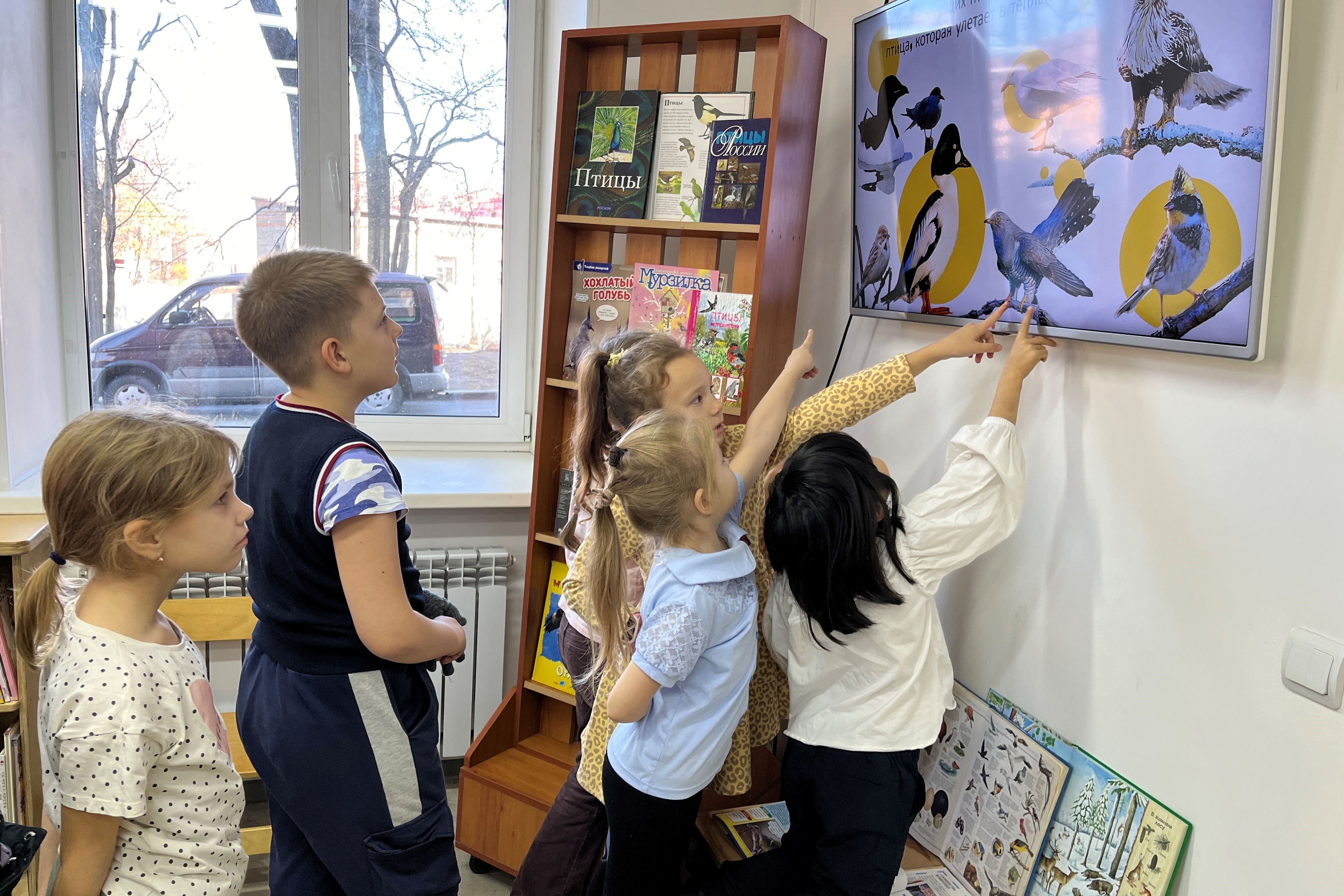Дети познакомились с книжной выставкой, посвященной жизни птиц, прочитали статьи в журналах «Тошка» и «Свирелька» о правильном прикорме пернатых зимой и обустройстве кормушек. Ребята обсудили проблемы зимующих птиц и то, какую помощь можем оказать им мы, горожане. Ведь в ней нуждаются не только синички, городские голуби и воробьи, но и многие пернатые обитатели леса. Дети рассказали, что зимой постоянно делают кормушки и подкармливают птиц.