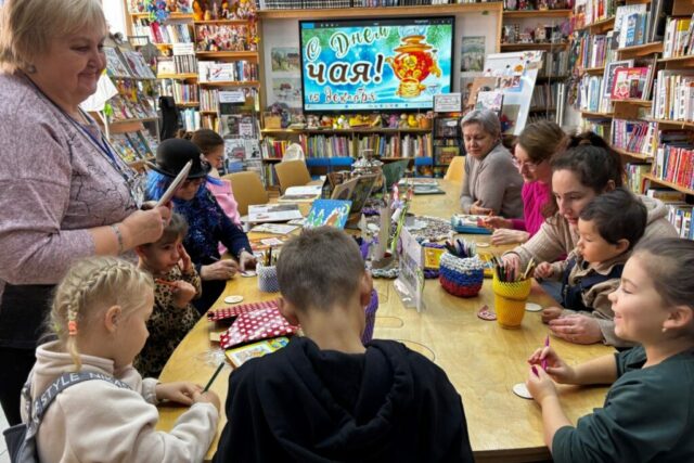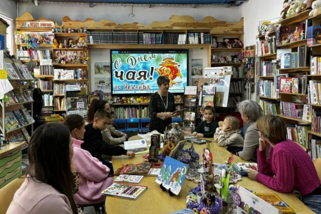 14 декабря, перед Международным днем чая (15 декабря), в детской библиотеке № 7 было особенно шумно и весело. На праздник пришли дети, их мамы и даже бабушки – это было настоящее семейное мероприятие, которое каждый месяц проходит в рамках совместного проекта библиотек № 7 и № 12 (ул. Калинина, 281) «Всей семьей в библиотеку».