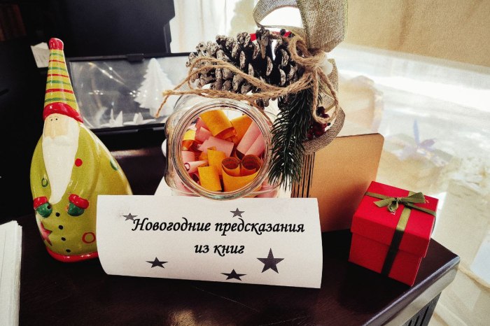Сотрудники библиотеки подготовили добрую и познавательную игровую акцию: каждый читатель может выбрать любимую книгу и получить новогоднее предсказание, составленное из цитат самих текстов. Это не просто игра — это волшебный мост между страницами и реальностью, где каждое предложение может стать зерном будущего.