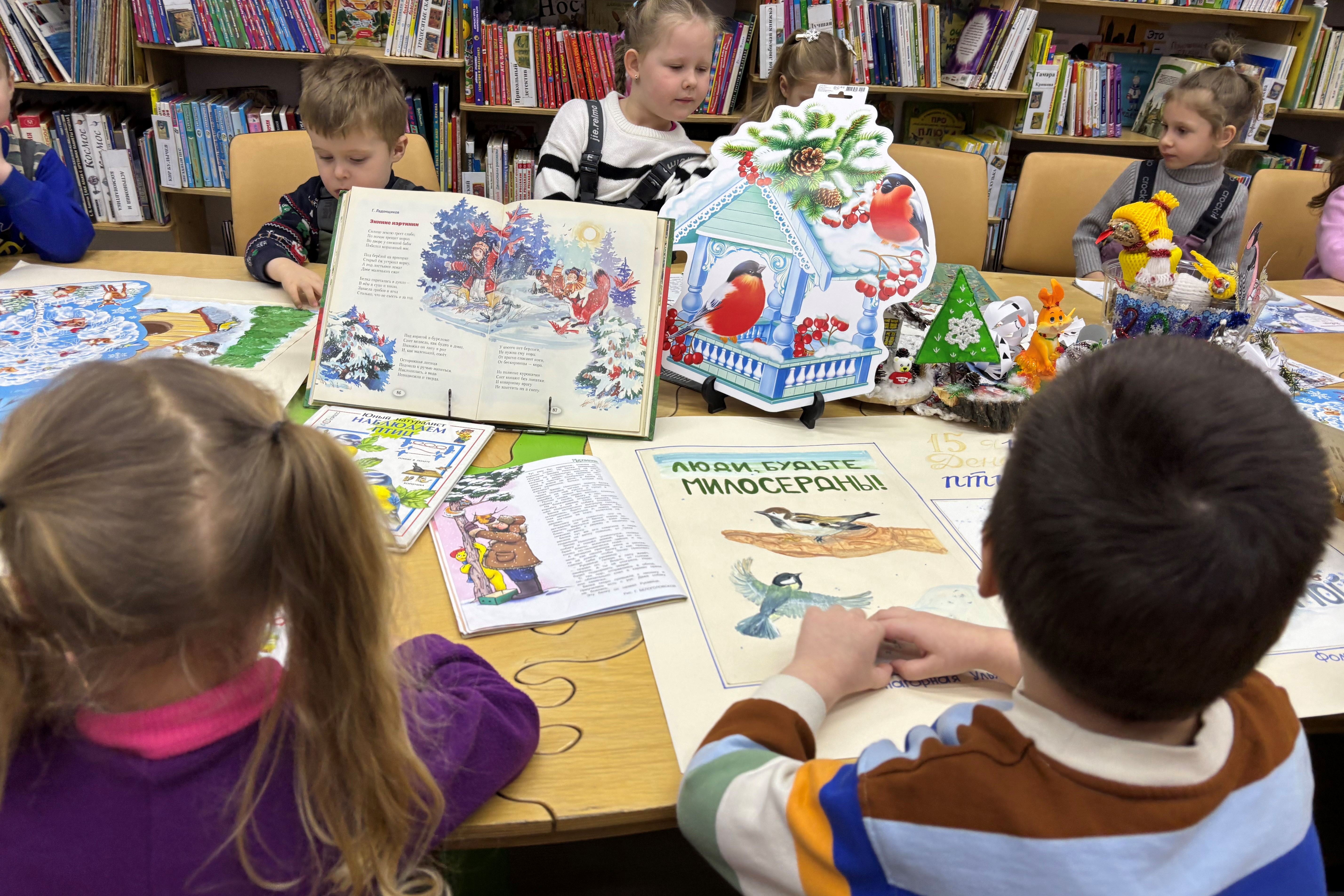 16 января в детской библиотеке №7 в рамках совместного проекта «Истоки добра» воспитанники детского сада № 39 собрались, чтобы отметить всероссийский экологический праздник. Дети внимательно послушали стихотворение Александра Яшина «Покормите птиц зимой», а потом поговорили о том, как можно помочь зимующим птицам. Дошкольники накануне делали в детском саду кормушки для птиц и развесили их на ветвях деревьев на территории детского сада. А теперь они будут следить за тем, чтобы у птиц всегда был корм, и тогда птицы не погибнут от голода и холода. После прочтения рассказа все захотели кормить синичек через окошко в своих квартирах. И каждый придумал свое угощение для птиц.