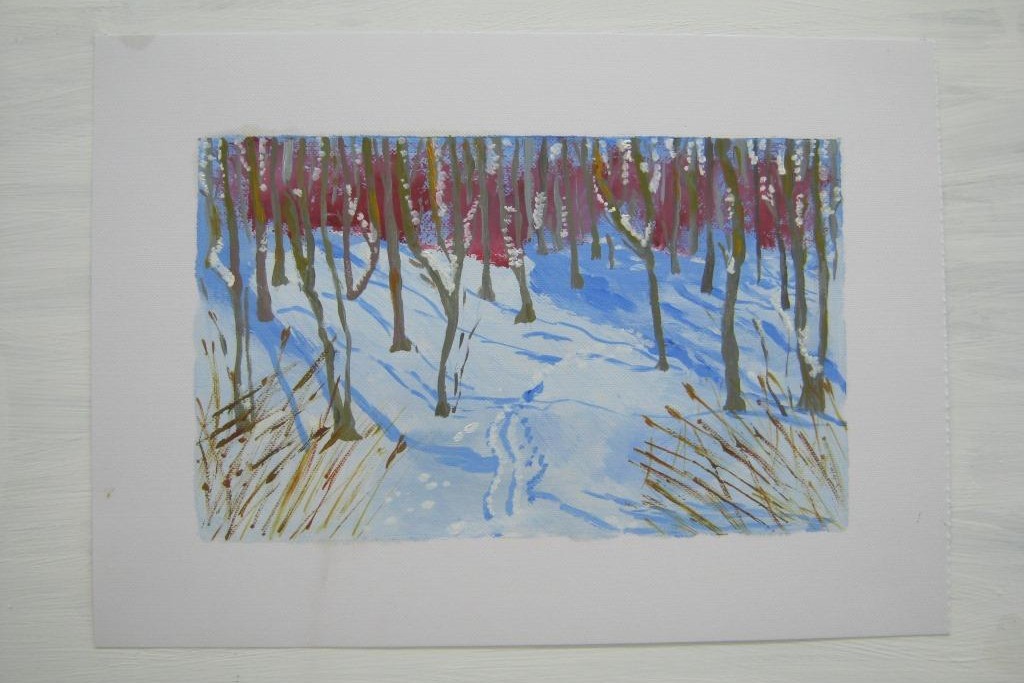 МП: Было. Мне нравится зиму писать. И я, работая, хотела передать эти ощущения, когда заходишь домой и задубевшие от холода штаны ставишь у печки. Когда постельное белье с мороза заносишь и этот запах. Исходя из этого и пишу. Для меня, кстати, рисование – это медитация. Когда рисуешь, ты где-то не здесь. У меня еще так бывает: хожу, думаю, тоже в себе, это все там вызревает, а потом сажусь и медленно так – одну полоску, вторую полоску.