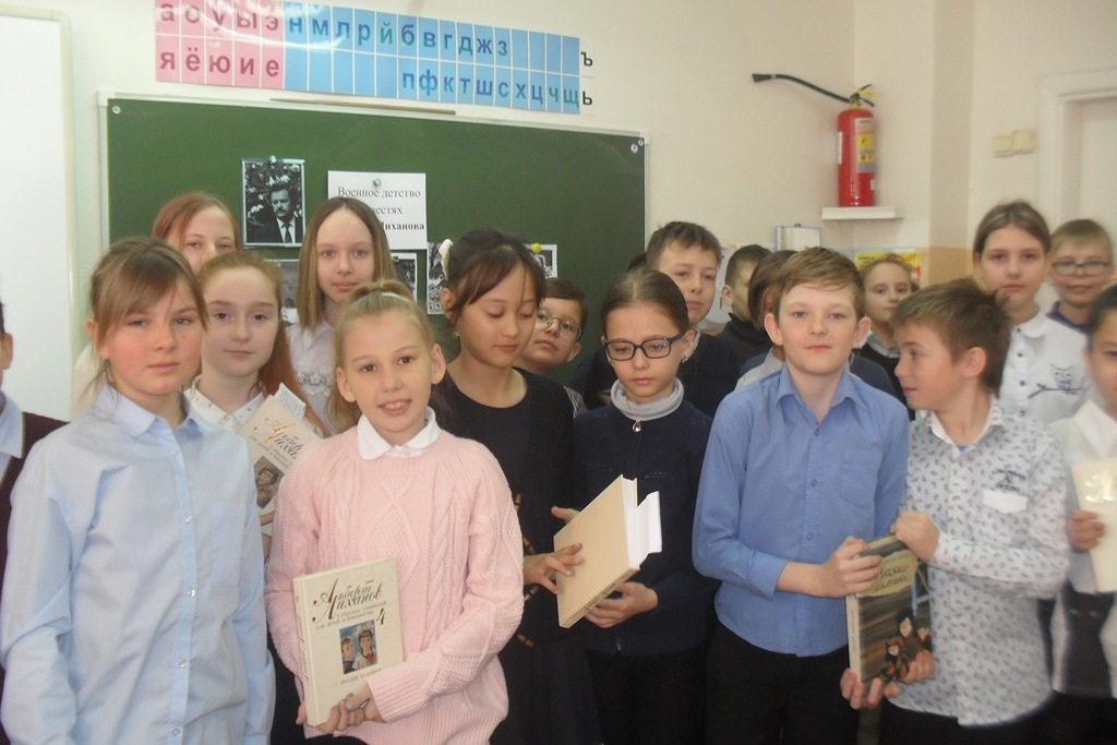 Учащиеся 3, 4 — х классов МБОУ СОШ № 47 и № 78 – всего 175 человек принимают участие в акции «Альберт Лиханов: о самом главном». Библиотека № 21 организовала для школьников 10-13 марта рекомендательные беседы «Военное детство в повестях Альберта Лиханова».