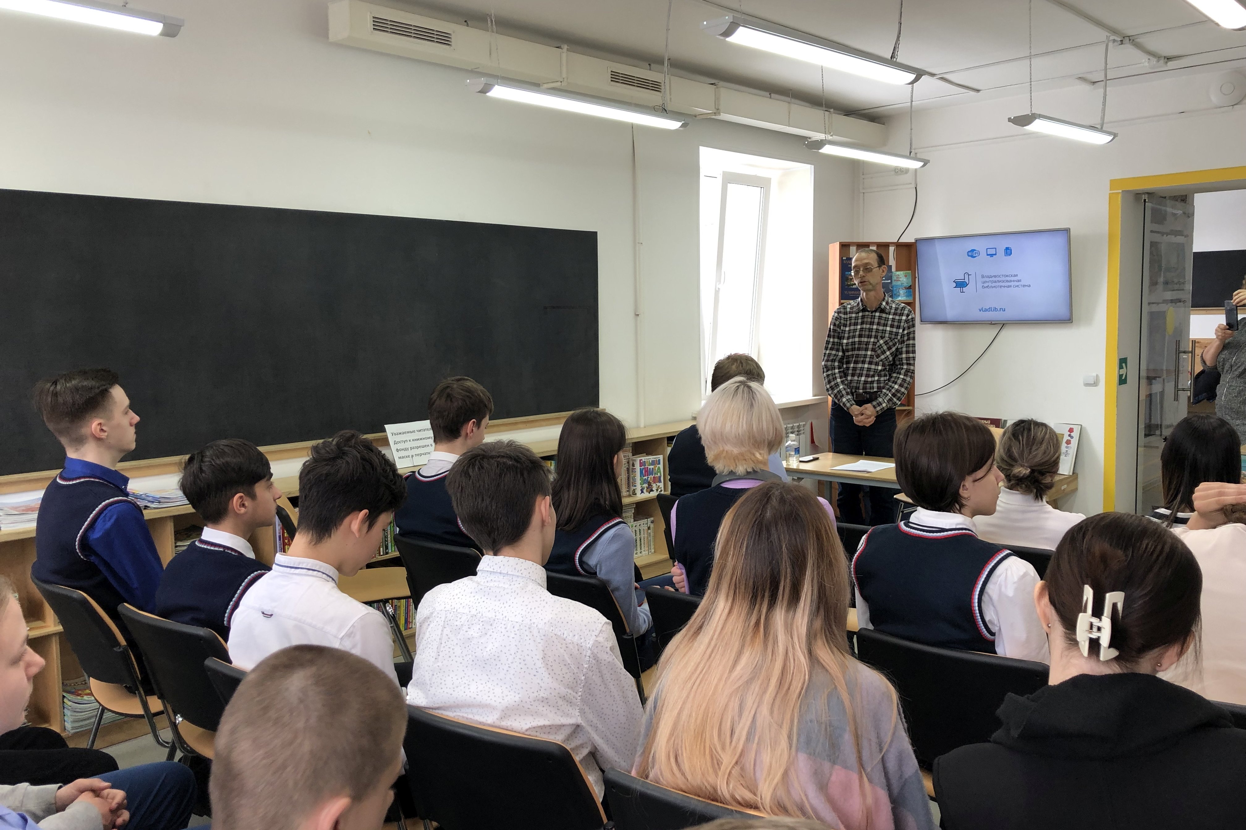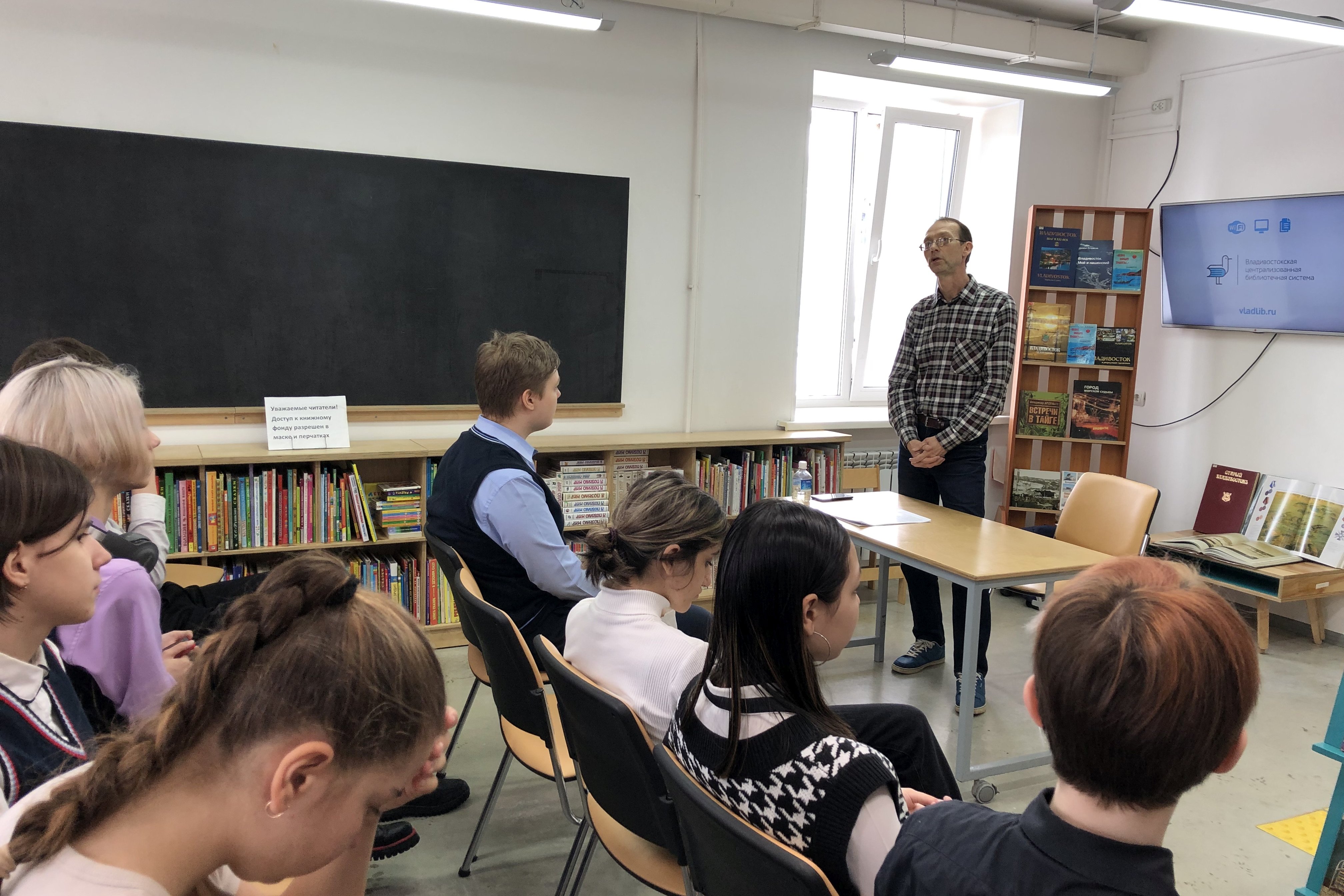 15 марта учащиеся 9 «Б» класса школы №6 пришли в библиотеку №5 на лекцию «Шпионский Владивосток» в рамках проекта «Объяснения», которую прочитал Сергей Корнилов, историк, краевед, журналист, действительный член Русского географического общества. Ведущий проекта рассказал об агентах, разведчиках и шпионах, в разное время работавших во Владивостоке.