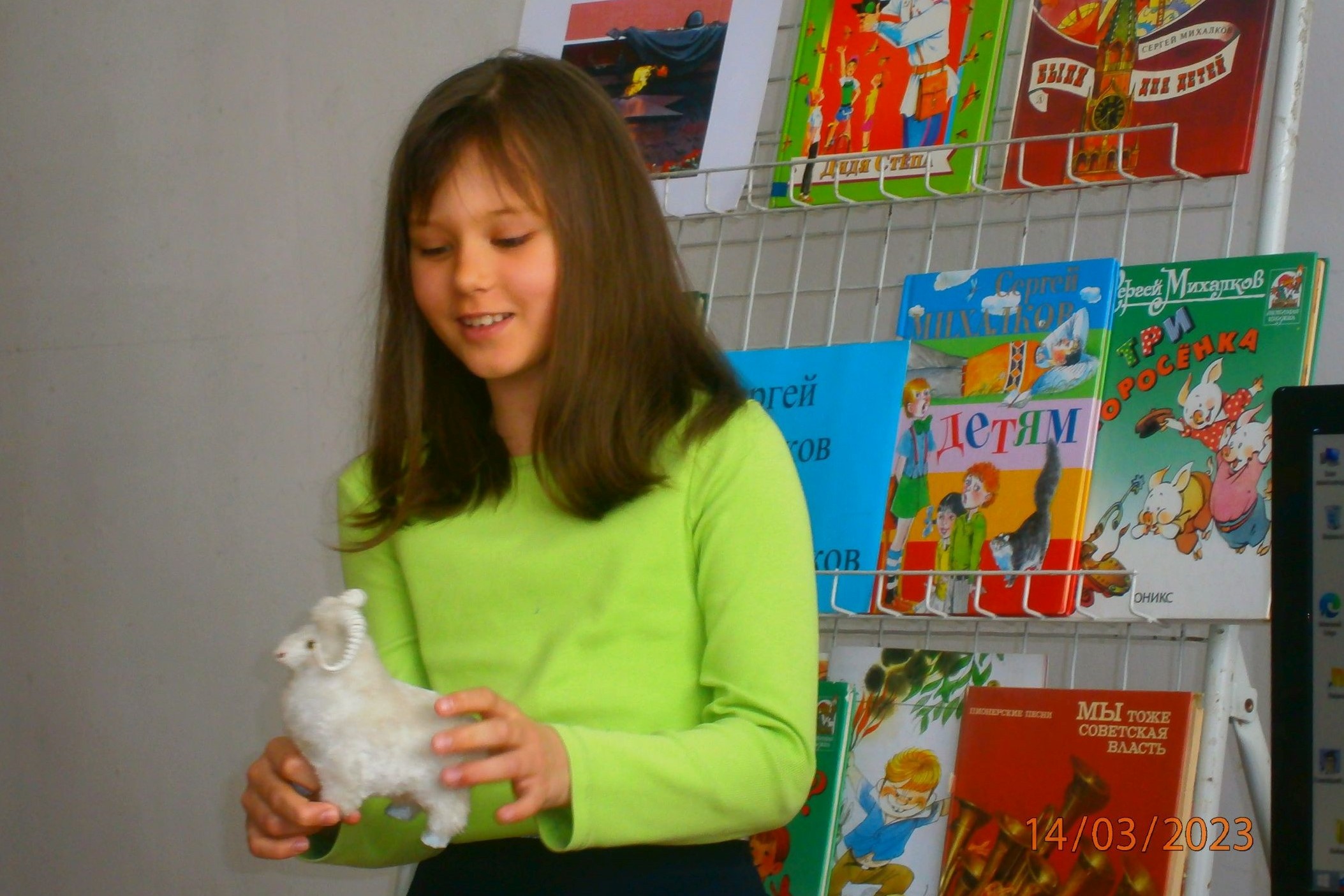 15 марта эта же библиотека организовала беседу-игру «Вот компания какая!» по творчеству Сергея Михалкова для дошкольников МБДОУ Д/С № 33. По книгам писателя узнавали буквы («Азбука»), счет («Котята»), поиграли в «Игралочку».