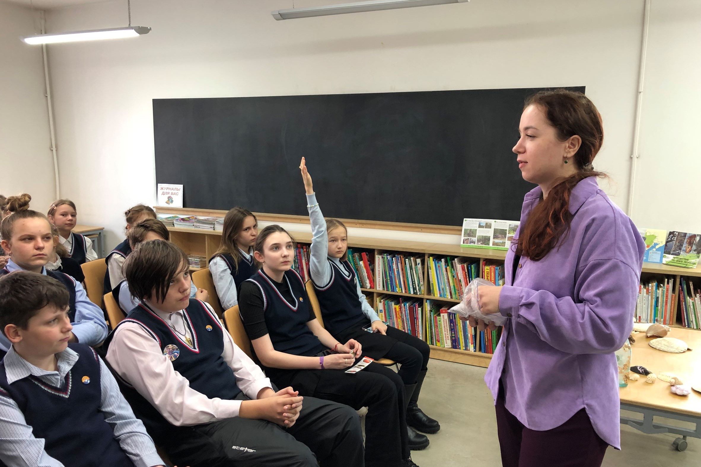 Диалог со школьниками охватывал не только увлекательные и интересные подробности о работе заповедника и его обитателях, но и крайне важные и волнующие всех в современном мире экологические проблемы: как уберечь, защитить, сохранить всех представителей природы, что мы все вместе и каждый лично можем сделать для этого.