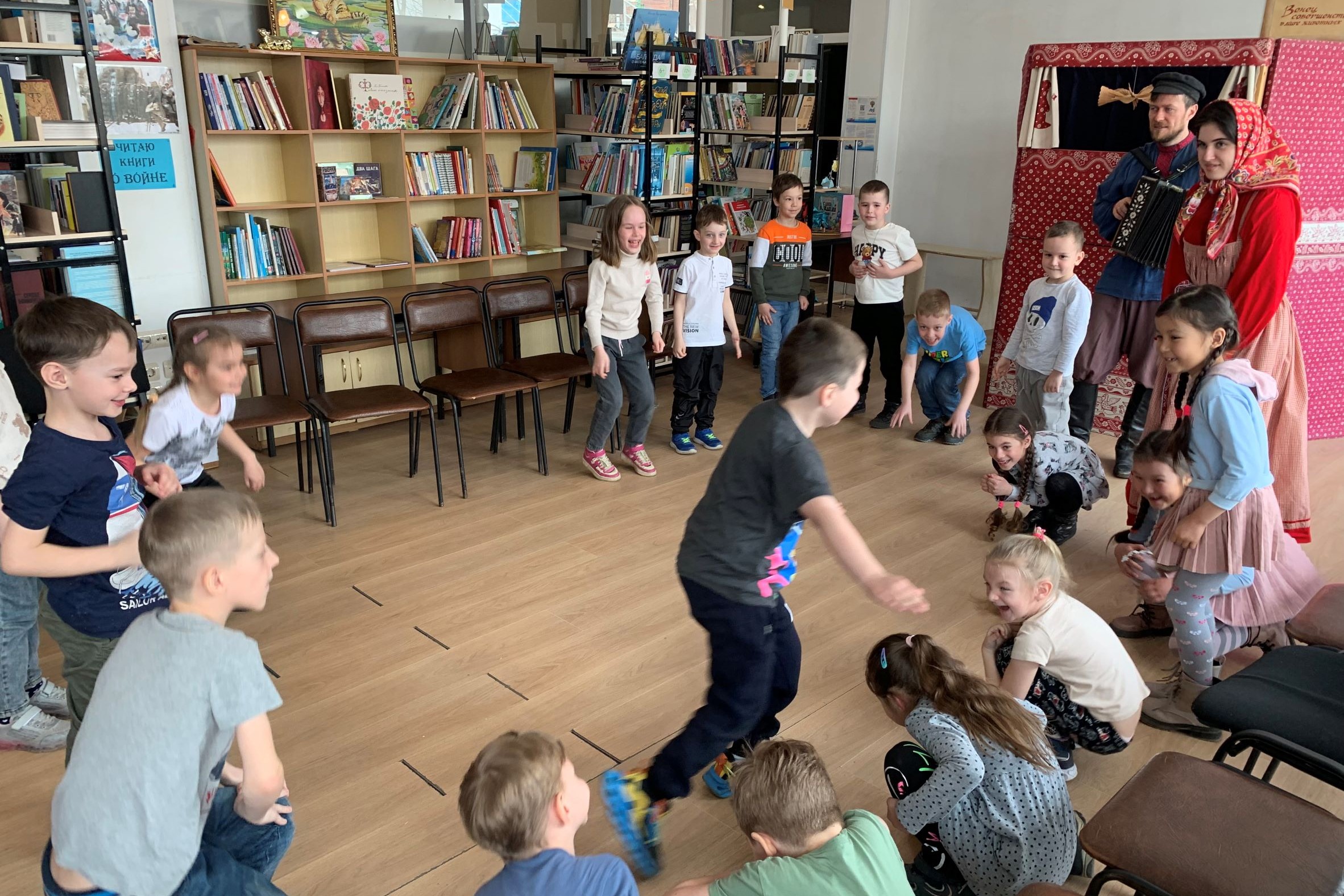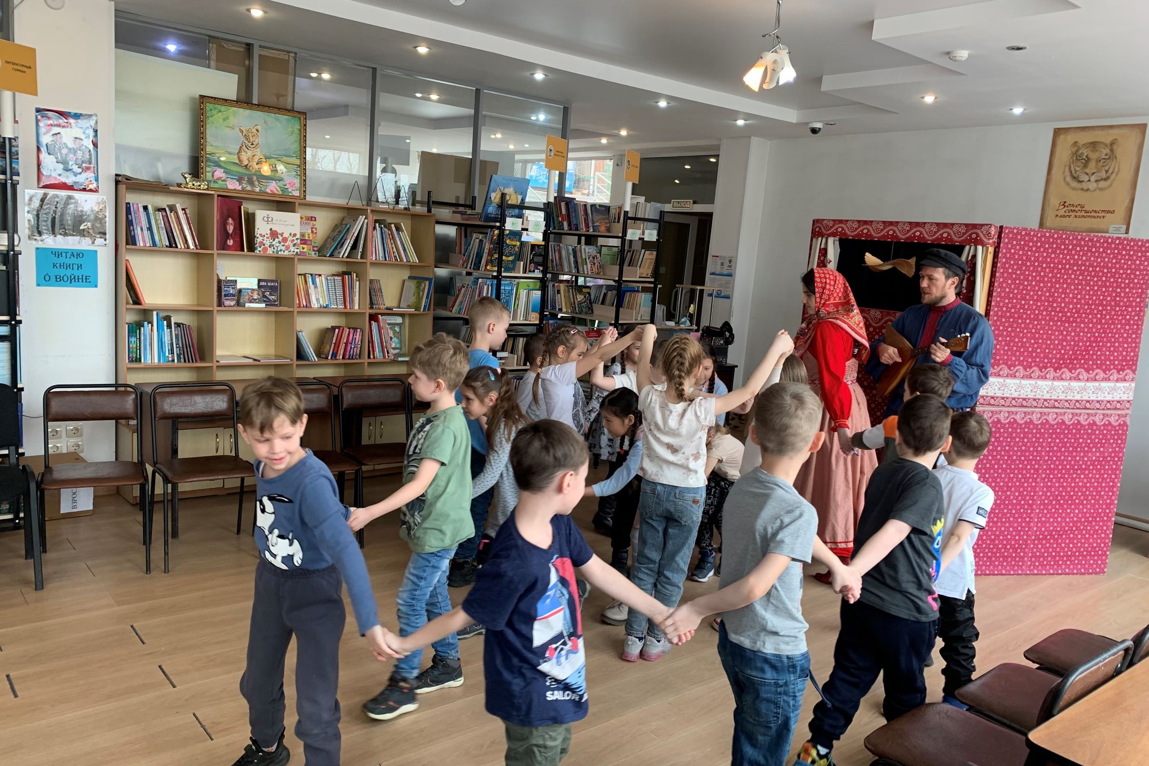 11 апреля в библиотеке № 3 (ул. Хабаровская, 19) проведен для самых маленьких читателей настоящий праздник, который принес малышам отличное настроение, веселье и неожиданную радость. Праздник назывался «Энергия весны», но что самое главное – его подготовили и провели большие друзья библиотеки — Даниловский Василий Александрович и Срябницкая Елизавета Александровна, артисты и вдохновители фольклорного театра «Петрушка».