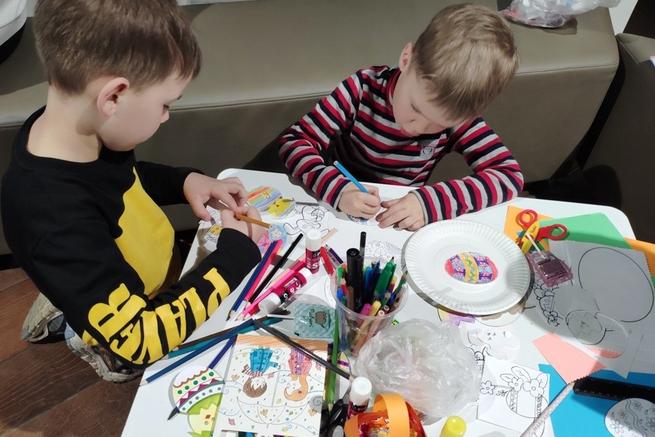 Одной из первых нашу площадку посетила семья, представленная сразу четырьмя поколениями – от прабабушки, которой 86 лет, к тому же она блогер, и до пятилетней правнучки. Пока бабушки наперегонки отгадывали ребусы и загадки, молодежи создавала творческие работы. Ведь по-прежнему большим успехом пользуются многочисленные варианты наших мастер-классов, сегодня объединенных пасхальной темой. Для ребят рукодельницы — библиотекари предлагали на выбор разные техники исполнения поделок: это и объемные аппликации и коллажи из цветной бумаги, и фигурки из бумаги, где главными персонажами стали, конечно, писанки (пасхальные яйца) и пасхальные зайцы. Детвора с удовольствием украшала символ Пасхи орнаментами, раскрашивала в самые яркие, фантастические цвета. Ребята сделали массу корзинок для пасхального яйца, создали красочные коллажи и аппликации «Пасхальный заяц».
