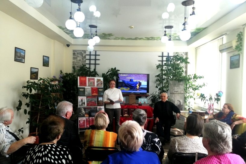 В канун дня Победы участники музыкально-поэтического клуба «Мои года – моё богатство» подготовили концертную программу к празднику Победы. Руководитель клуба Владимир Владимирович Мороз открыл концертную программу циклом песен о войне, познакомил участников вечера с историей создания песен. В ходе мероприятия звучали фронтовые песни, стихотворения.