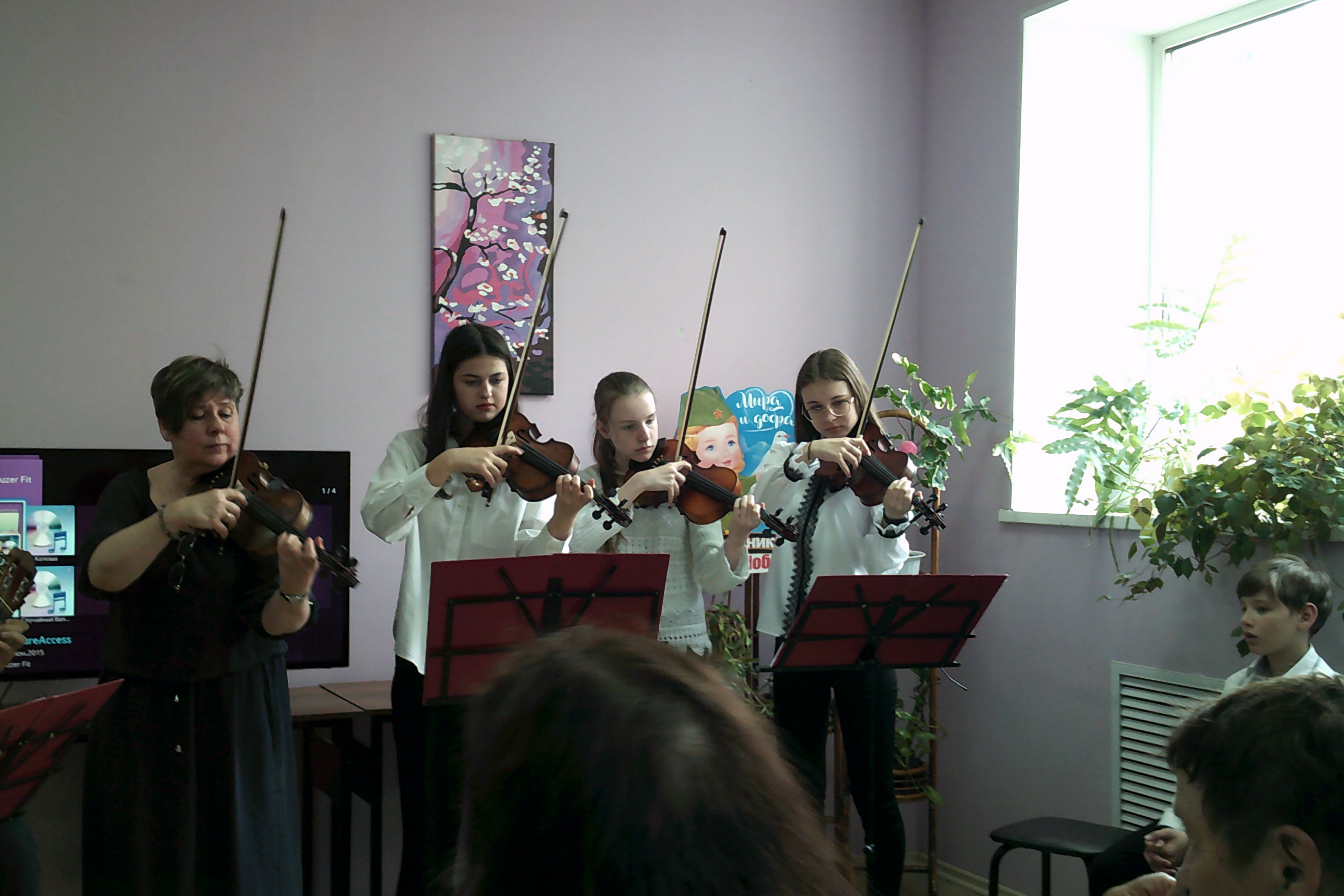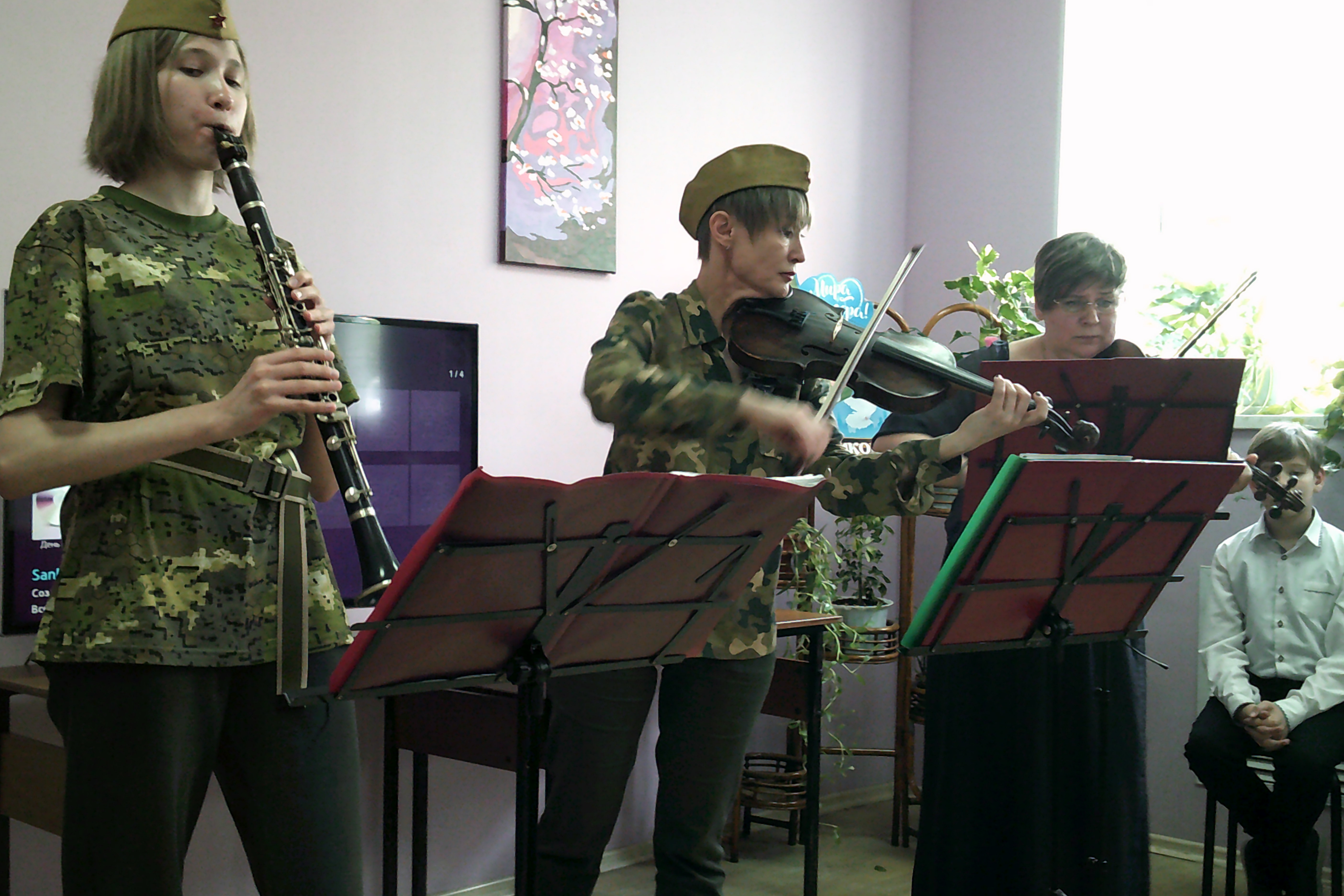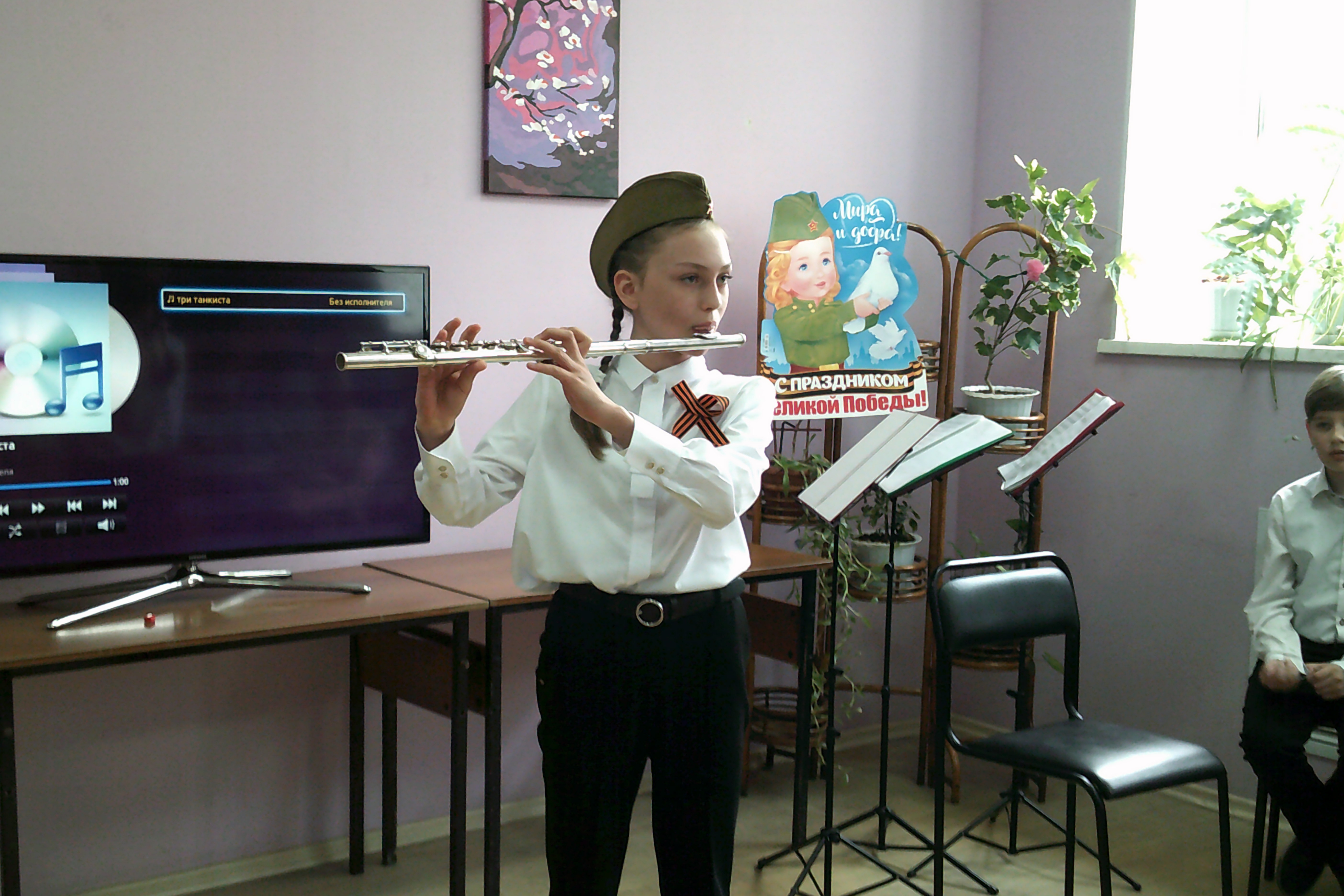 А концертная бригада МБОУДОД ДШИ № 8 им. А.В. Воробьева показала программу «Ленинградский метроном», посвященную 9 Мая. Прозвучали произведения: «Вечер на рейде», «Риорита», «Небесный тихоход», «Катюша».