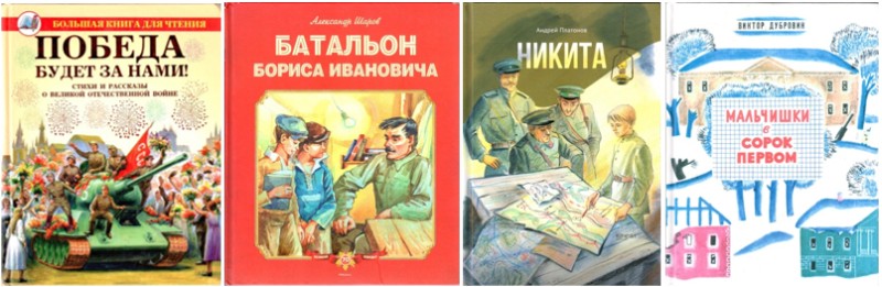 Что касается художественных книг, библиотекарь посоветовала сборник «Победа будет за нами!» — это стихи и рассказы, а также дневники и воспоминания очевидцев, то есть, эта книжка представляет Великую Отечественную войну в основных сражениях. Александр Шаров написал повесть «Батальон Бориса Ивановича» прямо на фронте — о детдомовских ребятах и их жизни на территории, захваченной врагом. О жизни детей во время оккупации рассказывает и книжка фронтовика Андрея Платонова «Никита». О детях блокадного Ленинграда книга Виктора Дубровина «Мальчишки в сорок первом».