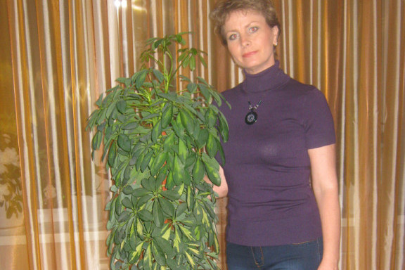 потому как азалия растёт высоко в горах и ей необходим свежий и прохладный воздух. Вооружившись энциклопедиями, я стала изучать уход за этим растением, пересадив его в специальную почву и горшок, я стала за ним ухаживать и вот роскошная азалия цветёт и радует меня вот уже 10 лет… Еще изумительно красивое растение, которое украшает мой дом это шеффлера, я ее вырастила высотой более 1,5 метра. Все мои гости с удовольствием устраивают рядом с ней фотосессию. Заряд хорошего настроения я черпаю в работе по уходу за зелеными питомцами. Своей любовью к цветам я увлекаю всех друзей и близких.