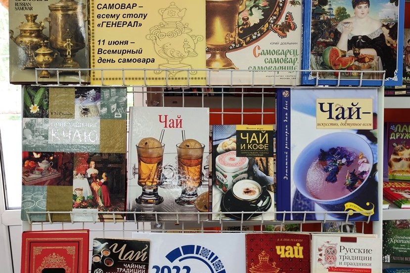 Для большей наглядности и создания эффекта погружения, специально для мероприятия была оформлена книжная выставка, посвящённая самовару, и был накрыт стол, на котором экспонировались самовары из частной коллекции нашей читательницы Галины Витальевны Мельниковой, также звучали песни о русском самоваре: как современные, так и русские народные.