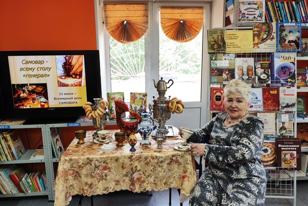 11 июня библиотека № 20 присоединилась к праздничному мероприятию «Всемирный день самовара» и организовала для педагогов-ветеранов фольклорные посиделки «Русский самовар – «генерал» на столе». Мероприятие прошло в рамках проекта МБУК «ВЦБС» «Моя Россия» и проекта «Всемирный флешмоб — кругосветка «Русский самовар», приуроченных к Году культурного наследия народов России. Самовар – неотъемлемая часть русской жизни, один из символов страны, наряду с матрёшкой, балалайкой и медведями. Его образ находит отражение и в литературных произведениях, и в живописи, и в музыкальном искусстве.