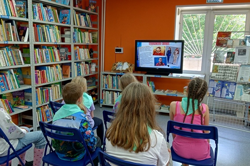 14 июня библиотека № 15 организовала для ребят из пришкольного лагеря СОШ № 65 «Вектор» познавательный час. Ребята были просто покорены подвигом женщин – космонавтов России. Прослушав сообщение и посмотрев презентацию «Женское лицо Российского космоса», дети на вопрос «кто хочет стать космонавтом?» дружно сказали: «Я». После прочтения выдержки из книги Юрия Батурина «Повседневная жизнь российских космонавтов» о том, как интересно спать в космосе, хоть стоя, хоть лежа на панелях сбоку, от вопросов не было отбоя.