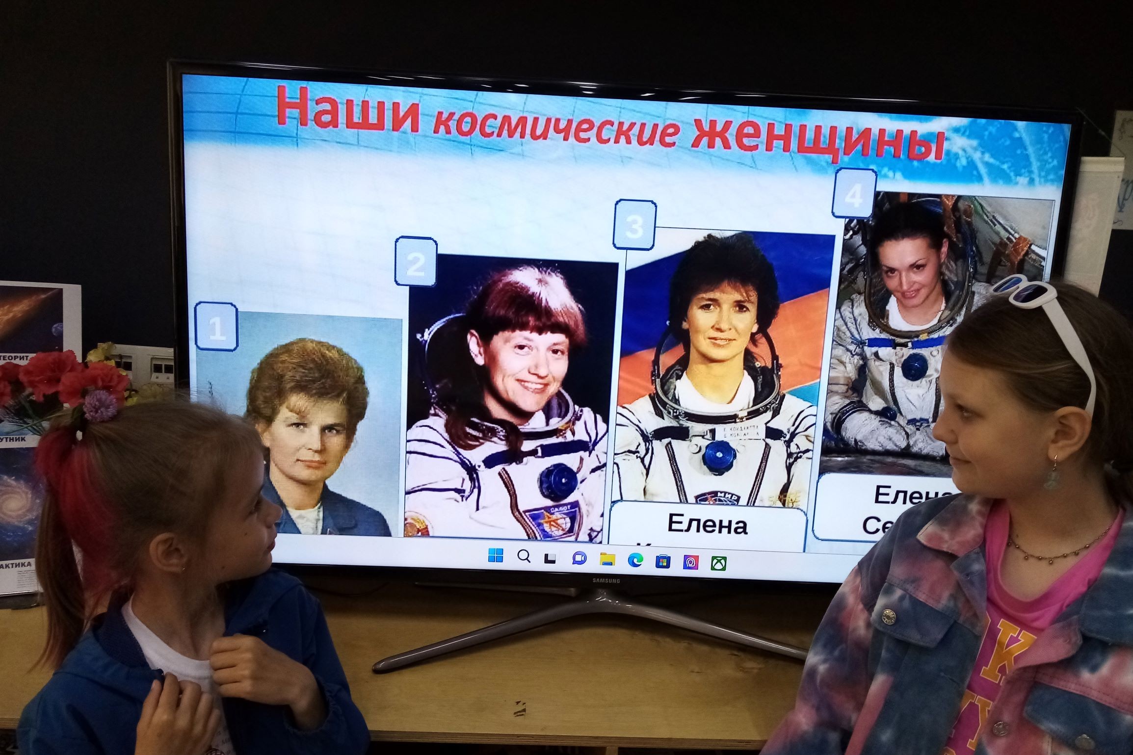 14 июня сотрудники библиотеки им. А.С. Пушкина (БУК) провели мероприятие для воспитанников пришкольного лагеря студии детского развития «Арлекин». Женщины – герои, обладающие ярко выраженными лидерскими качествами, устанавливающие мировые рекорды, не могут не быть примером для подражания. Ребята с большим вниманием слушали о трудном пути к космосу таких космонавтов, как Терешкова Валентина Владимировна, Савицкая Светлана Евгеньевна, Серова Елена Олеговна и других. Космонавты вызывают неподдельное восхищение и гордость у детей. Например, Елена Кондакова – выдающаяся женщина, которая летала в космос дважды. Она провела на орбите 169 дней, что стало рекордом среди всех женских полетов в космос. Савицкая Светлана первая в мире женщина, совершившая выход в открытый космос. Она установила три мировых рекорда по парашютным прыжкам из стратосферы.