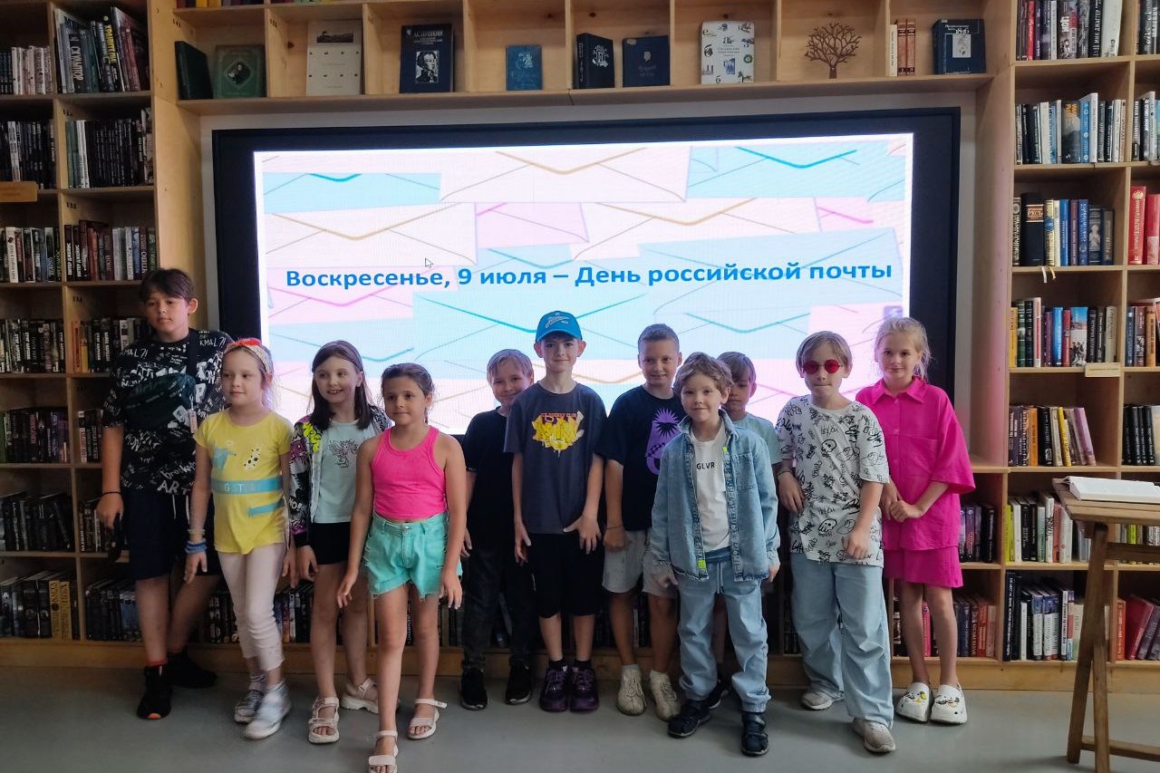 14 июля библиотека им. А.С. Пушкина (БУК) организовала для воспитанников пришкольного лагеря развивающего центра «Карапуз-академия» познавательный час об истории почты, приуроченный ко Дню российской почты — 9 июля.