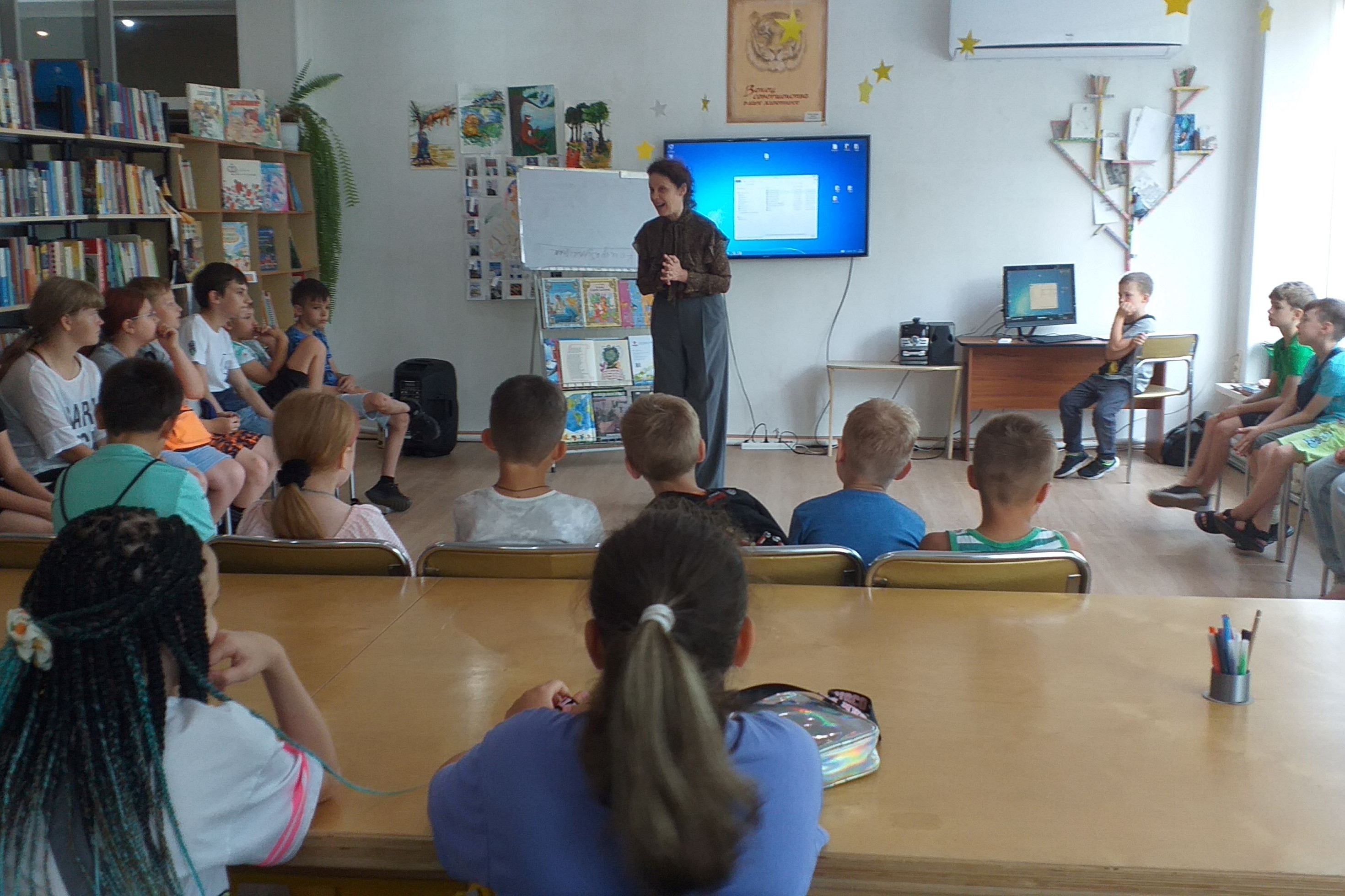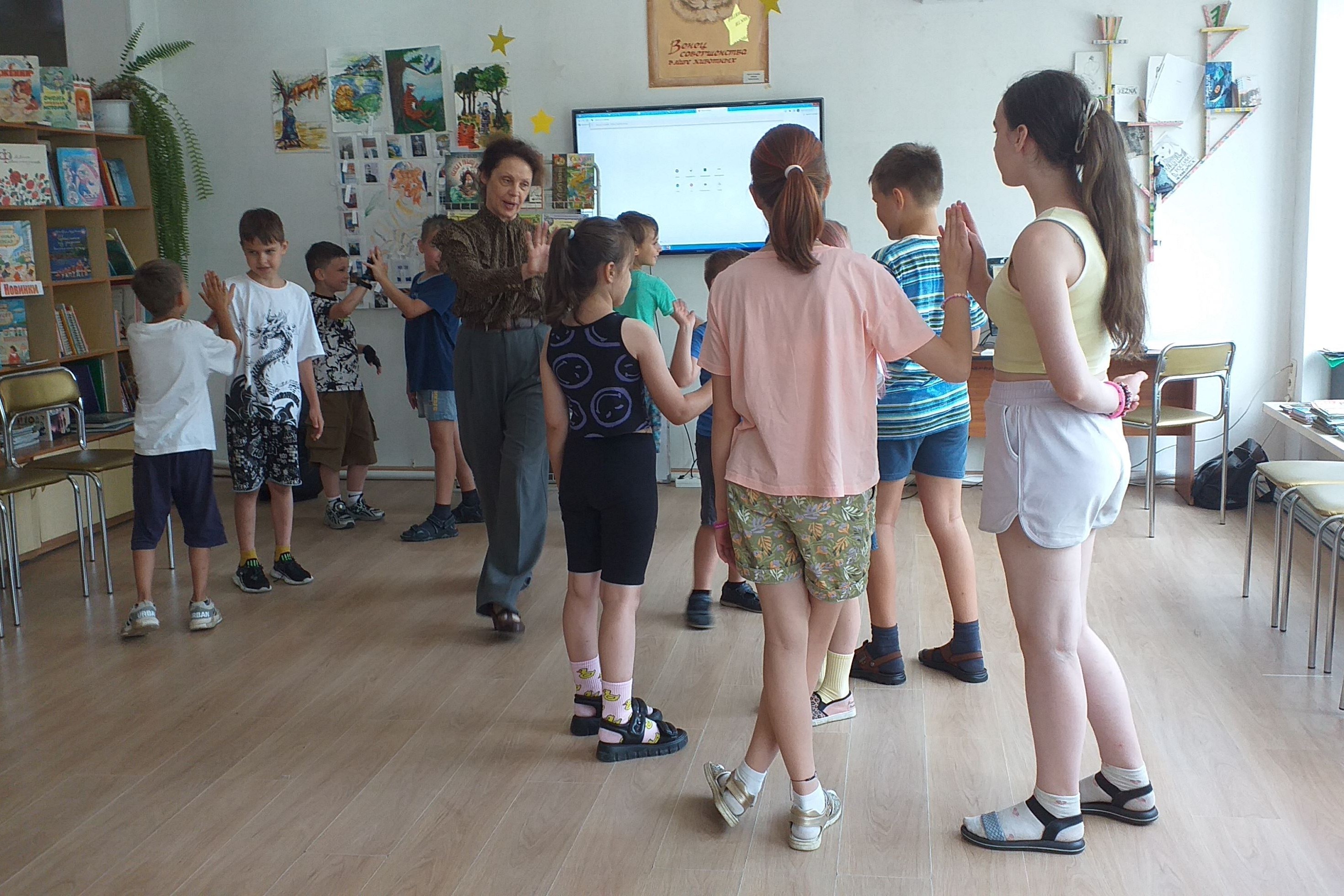 В этот же день в библиотеке состоялся квиз и для группы ребят из пришкольного лагеря МБОУ СОШ № 18. Но прежде, чем начать интеллектуальное сражение ребятам предстояло объединиться в команды и почувствовать себя частью группы. Для этого у них был маленький тренинг на сплочение.