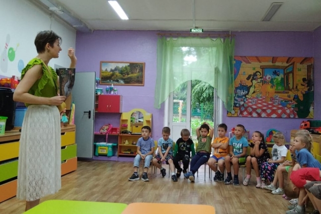 Пока за окном шумел дождь, 11 августа детвора из детского сада № 80 слушала истории, рассказанные писателем-натуралистом Георгием Скребицким. И в этих историях была то зима и ранняя весна, как в истории про ежика Пушка, то ослепительный солнечный день и двое мальчиков плывут на плоту по озеру к острову с чайками, а это вовсе и не остров, то первая рыбалка около мельницы в солнечное утро, сломанная удочка и с приключениями выловленный голавль, то опять ранняя весна и двое мужчин на лодке плывут по разлившейся реке и вывозят с затопленного острова лосенка, а за ними следует мать-лосиха.