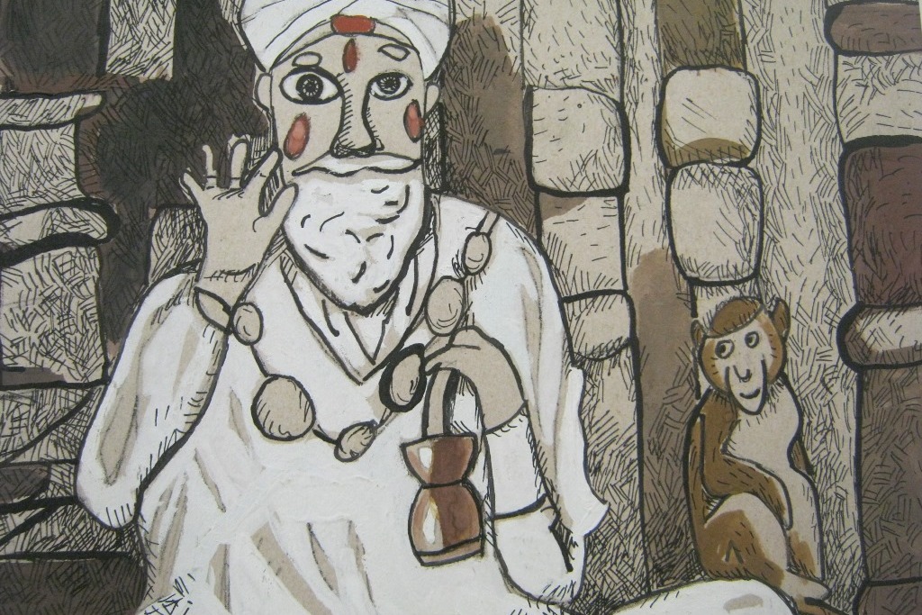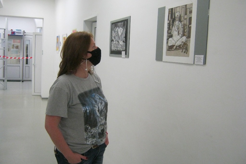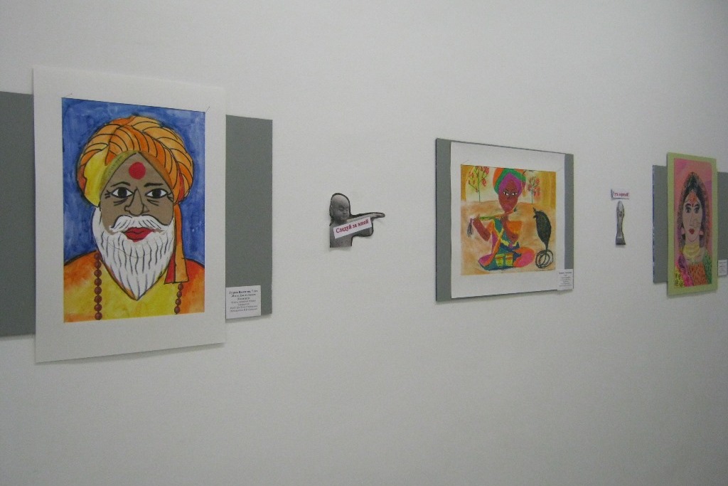 Стоит отметить, что внимание взрослых посетительниц библиотеки №8 особенно привлекает портрет благообразного индийца. Надпись гласит, что на портрете изображен Йогин Джагги Васуев (Садхгуру), рисунок Валентина Гудкова. Младшие школьники задерживаются у рисунка с фонариками в небе, где изображен праздник света Дивали, школьники постарше рядом с печальным слоном на фоне Тадж-Махала и выразительным портретом индийца с обезьянками.