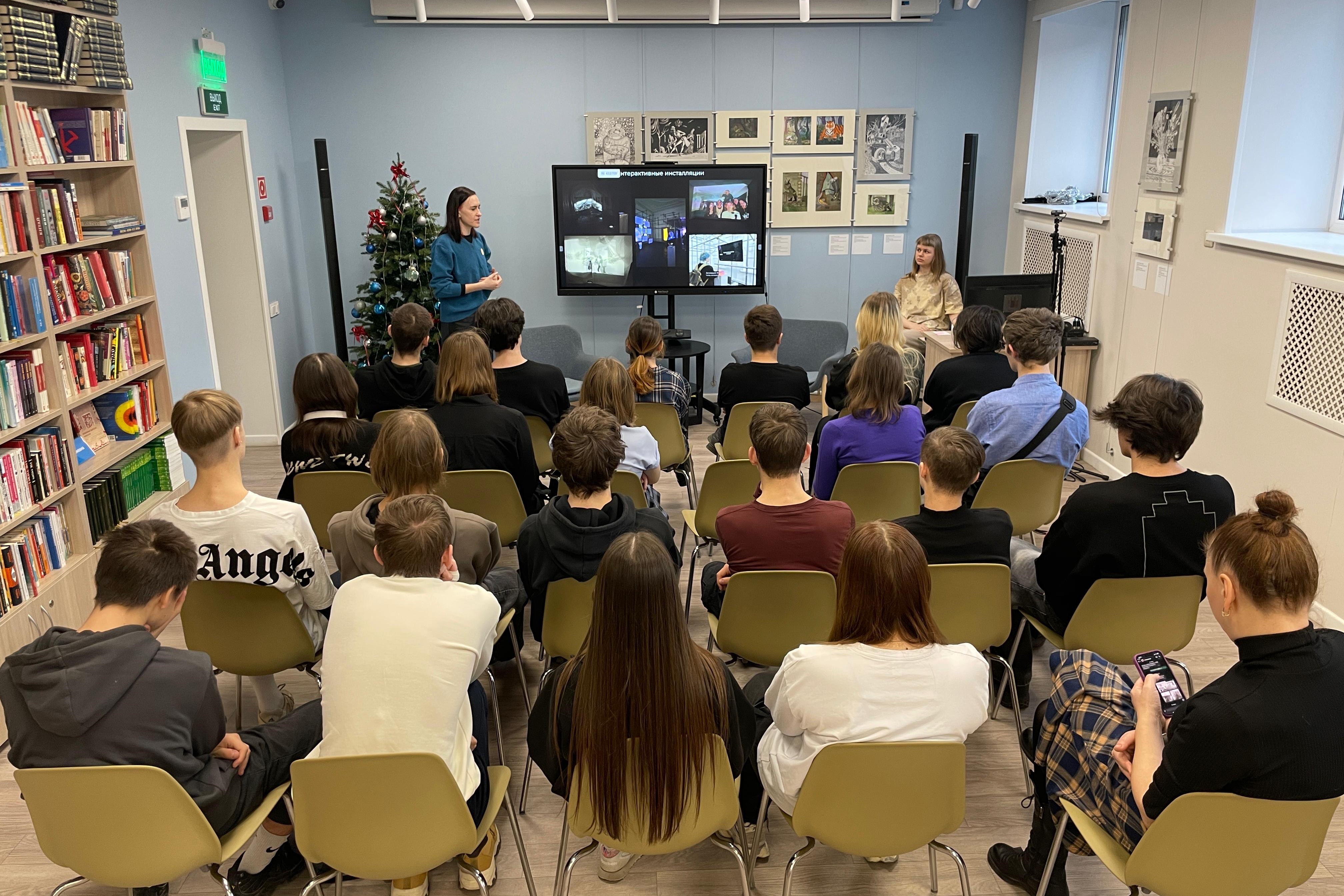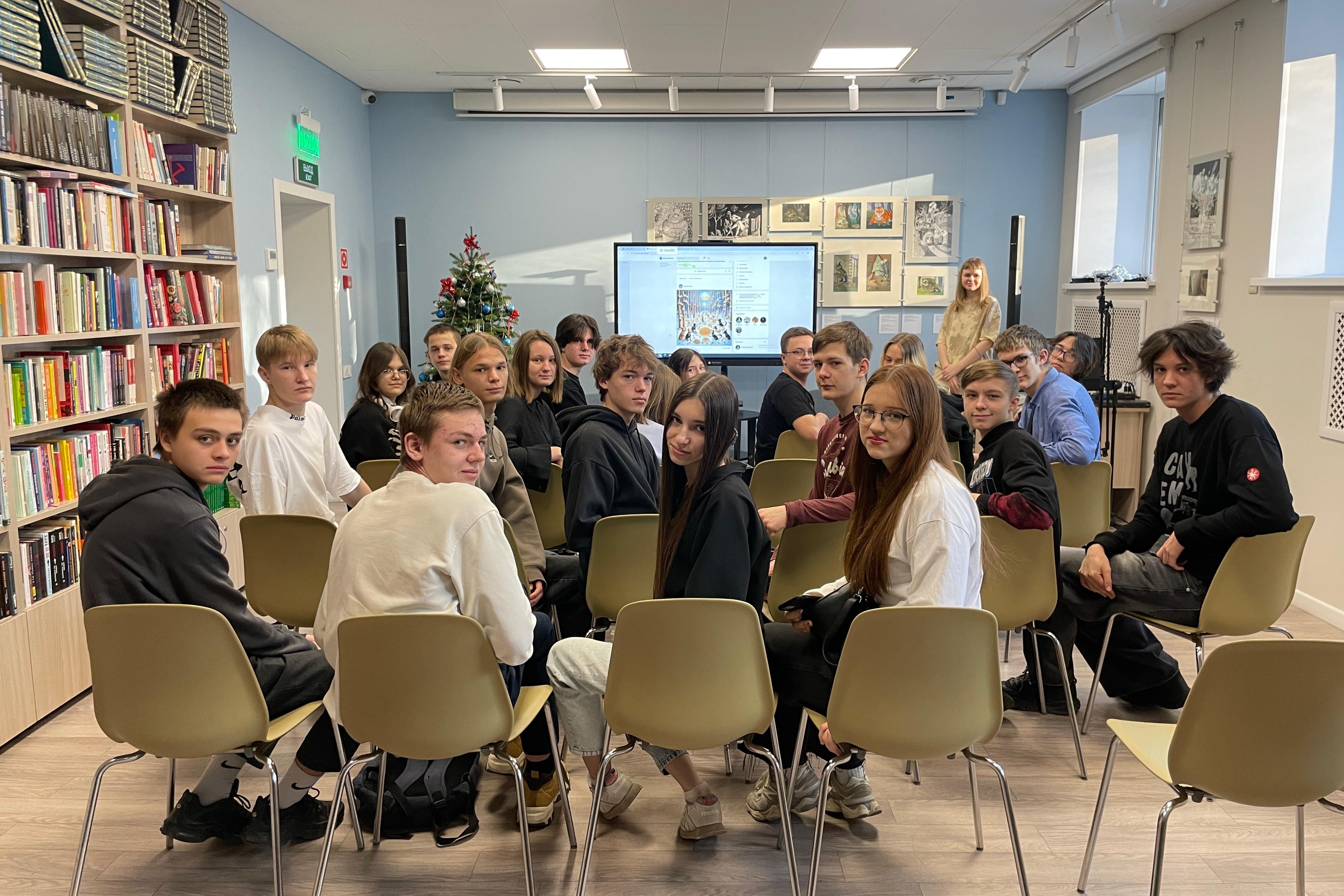 В пятницу 13 декабря в Центральной библиотеке им. А. Чехова прошел мастер-класс для учеников старших классов МБОУ «СОШ № 51 с углубленным изучением японского языка», на котором ведущие рассказали, что такое цифровое искусство, и как художники создают свои работы с помощью нейросети.