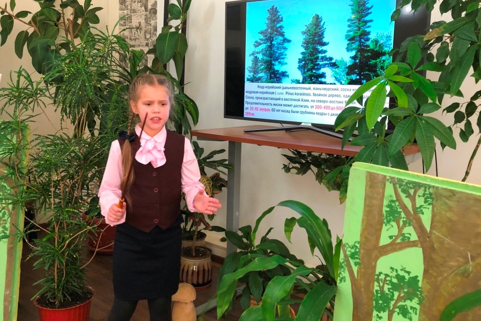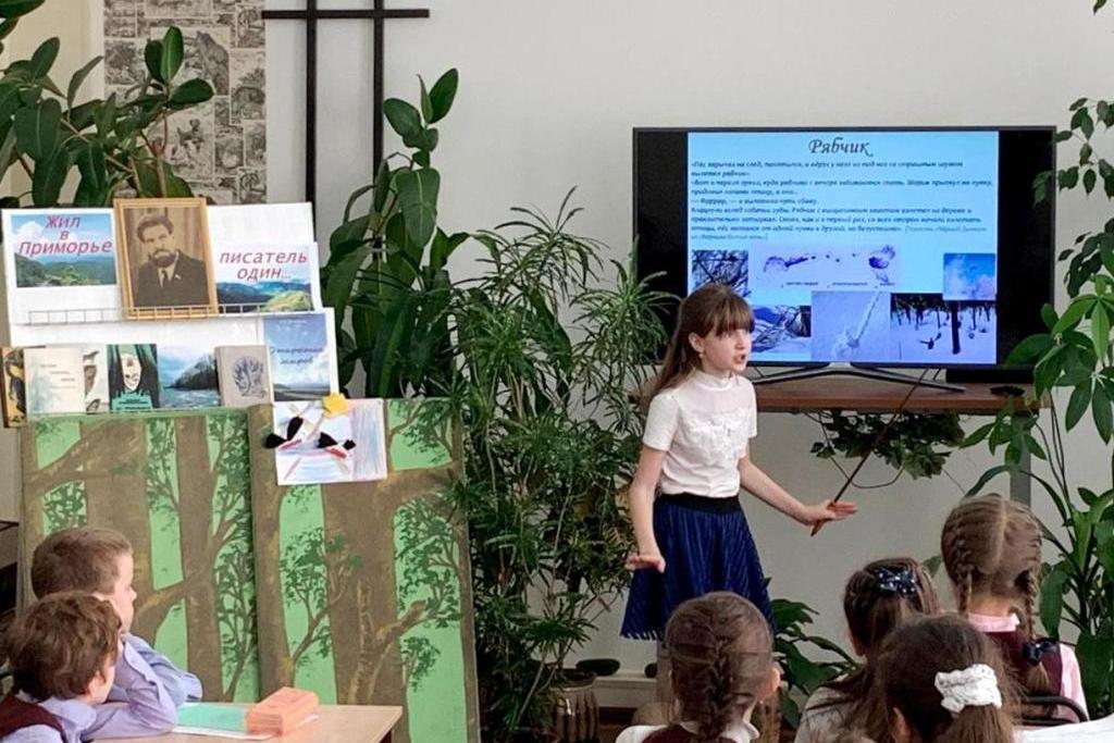 Сначала познакомились с таежным уголком Приморья, с людьми из родственного окружения, оказавшими влияние на творчество писателя, с землей, где Иваном Басаргиным были сделаны первые детские открытия, получены незабываемые впечатления, связанные с отчим краем. Далее школьники прослушали отрывки из автобиографического рассказа «Первая тропа» и представили свои исследовательские работы, над которыми работали более полугода.