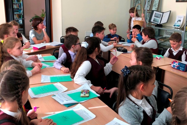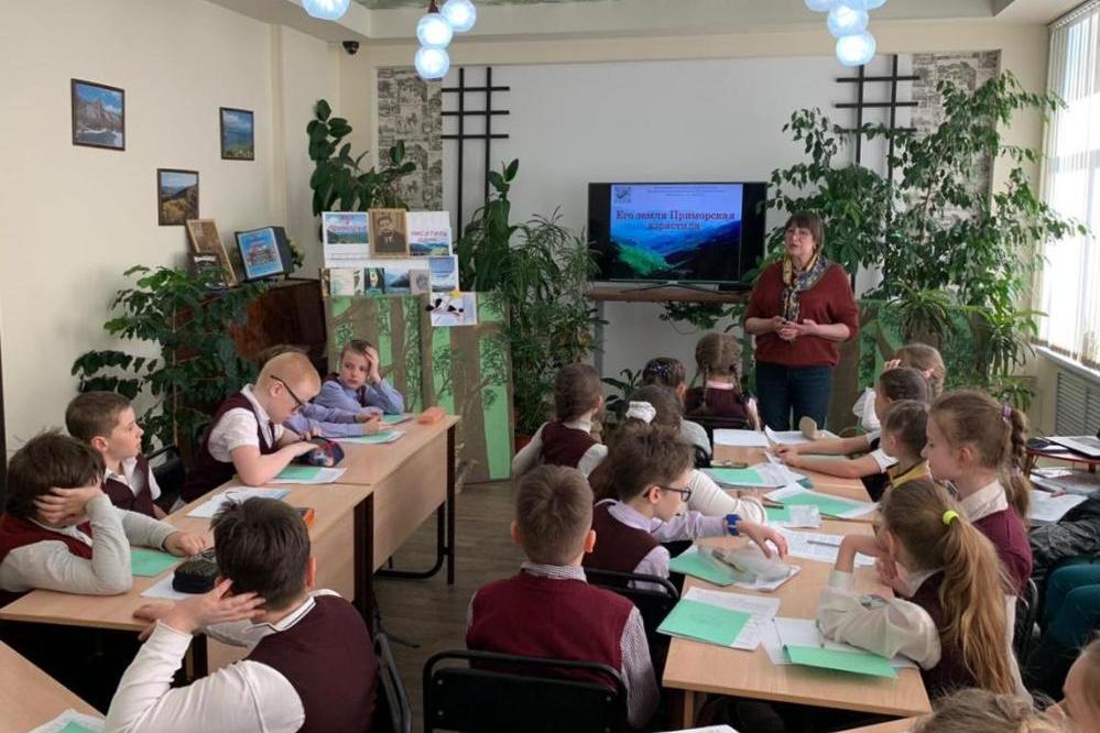 14 марта, накануне дня рождения писателя, имя которого носит библиотека, на занятии «Жил в Приморье писатель один…» с учащимися 3 «Б» класса МБОУ «СОШ № 57» в рамках программы «Читаем И.У. Басаргина» были также гости из других школ микрорайона и их родители.