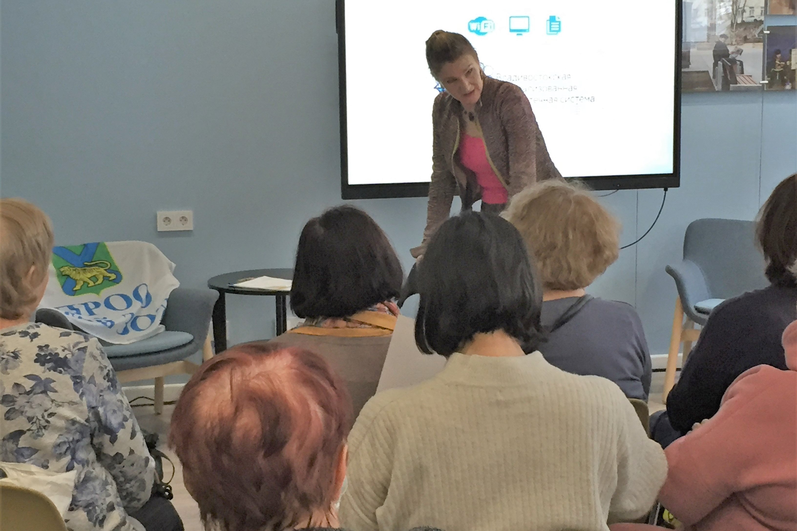 А если вы хотите стать настоящим спортсменом, займитесь скандинавской ходьбой! Ведь скандинавская ходьба – это прежде всего спорт. Представитель Приморской Федерации по скандинавской ходьбе, сертифицированный инструктор с медицинским образованием, Людмила Алексеевна Малеваная, рассказала об истории возникновения этого вида спорта, дала советы, как подготовить себя к скандинавской ходьбе, как правильно подобрать палки, одежду и обувь, объяснила, как должны проходить тренировки, о технике ходьбы. Рассказ о скандинавской ходьбе вызвал большое оживление среди слушателей, многие сразу же захотели записаться на тренировки.