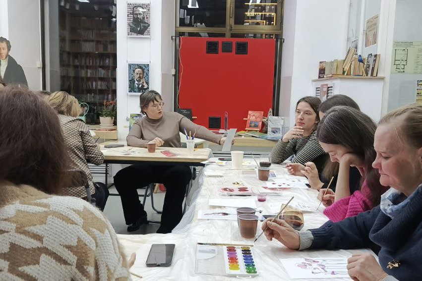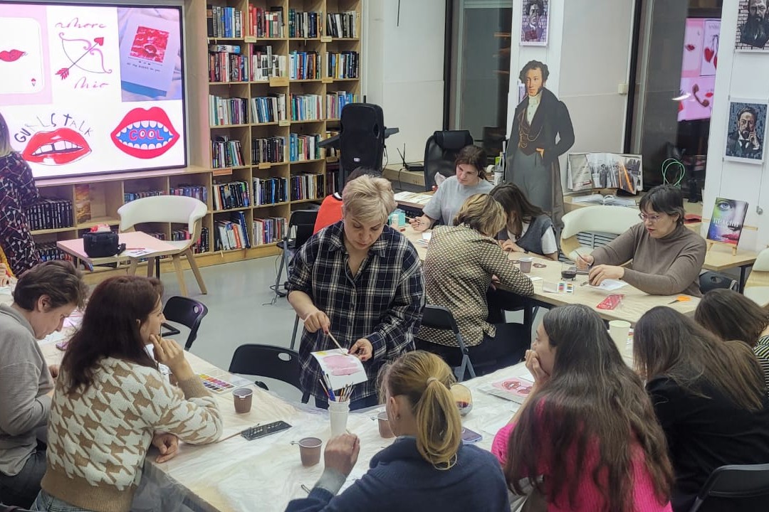 7 марта в уютном пространстве библиотеки БУК состоялся мастер-класс по созданию праздничных открыток в технике акварельной живописи. Мероприятие, последовавшее за лекцией об истории красной помады, прошло в атмосфере вдохновения и творческого подъема, участники получили уникальную возможность создать своими руками оригинальные и трогательные подарки, используя технику акварельной живописи.