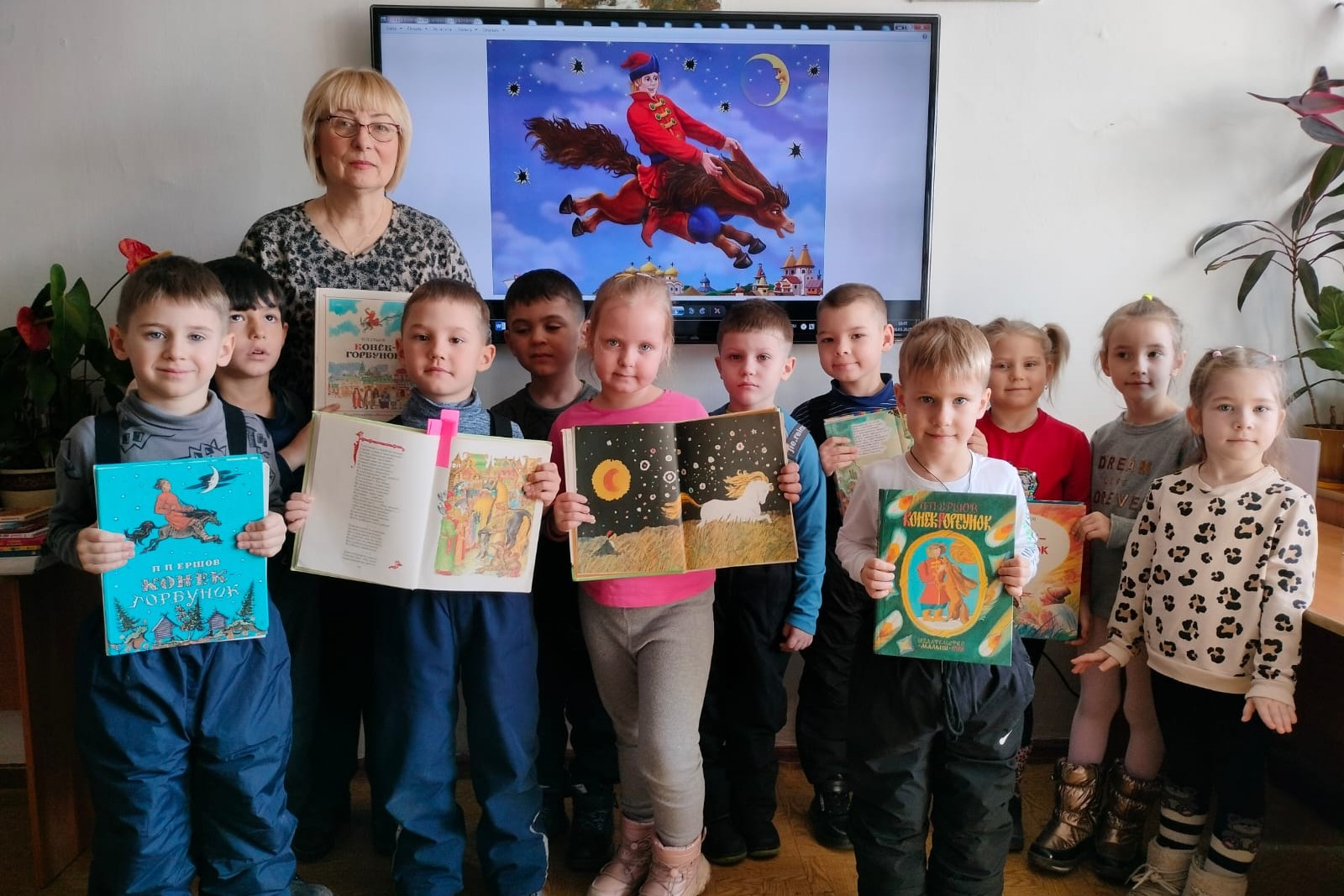 Из беседы ребята узнали о том, что сказка переведена на многие языки мира, что во многих городах России установлены памятники П.П. Ершову и его героям — Иванушке, Коньку-Горбунку, Жар-птице и Рыбе-Кит. В завершение мероприятия учащиеся ответили на вопросы викторины.