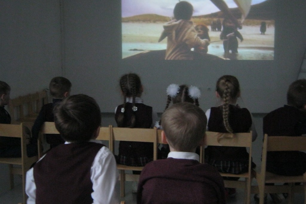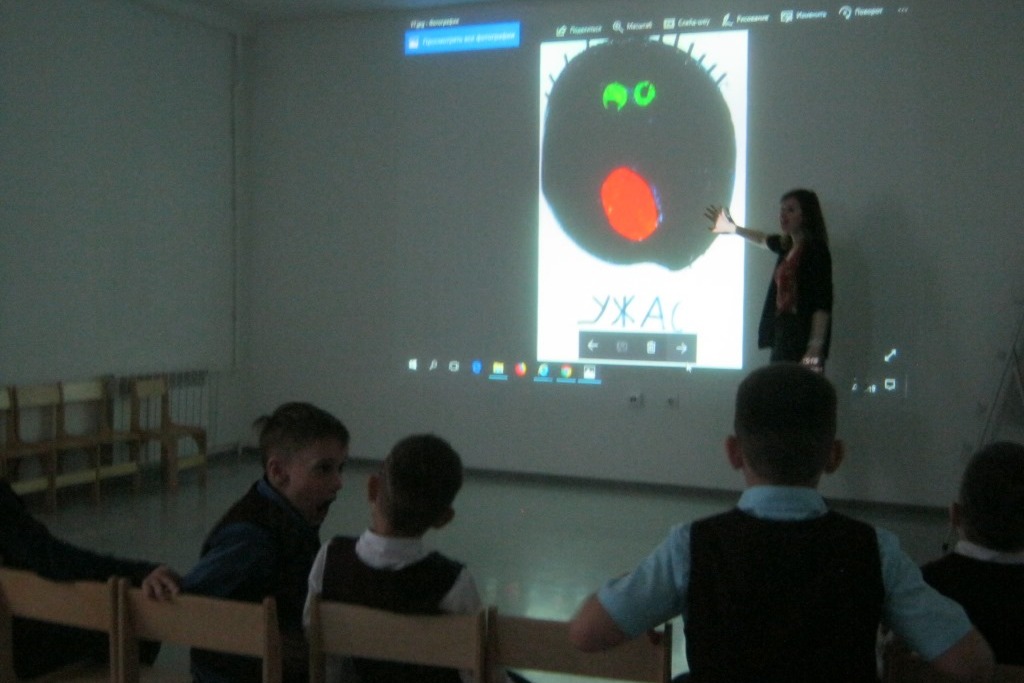 «Самокат» и «Розовый жираф» определяются сразу, потому что логотип или название издательства размещены на первых страницах. А вот РОСМЭН, «Речь» и владивостокский «Рубеж» не так очевидны, их пришлось поискать в конце книги. Если же вернуться к «Розовому жирафу», то на «Школе читателя» особое внимание было уделено книге Мориса Сендака «Кенни и его окно». А от мальчика Кенни, мечтавшего о корабле, разговор перешел к мальчику Максу, идущему на лодке под парусом к острову чудовищ. Или диких вещей, если обраться к английской версии названия фильма, снятого по одноименной книге Мориса Сендака «Там, где живут чудовища» или «Where the Wild Things are». Первоклашки посмотрели отрывок из фильма, где Макс прощается с обитателями острова и покидает их, и обсудили, что общего у чудовищ Мориса Сендака и рисунков-эмотиконов художника-аутиста Алексея Пинчука.