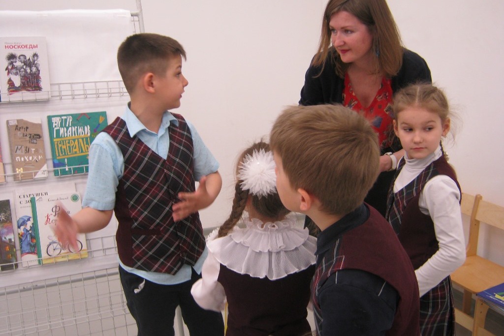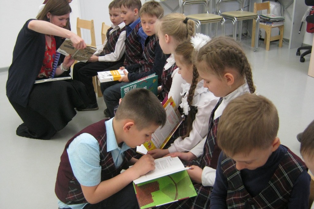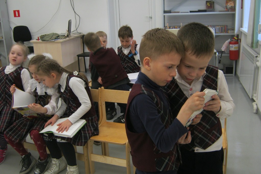 11 апреля на «Школе читателя» в библиотеке №8 первоклашки знакомились с книгами издательства «Розовый жираф». Для начала дети попробовали сами поискать информацию, какими издательствами выпущены те книги, которые им уже знакомы по занятиям «Школ читателя».