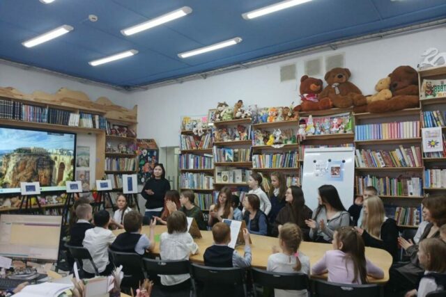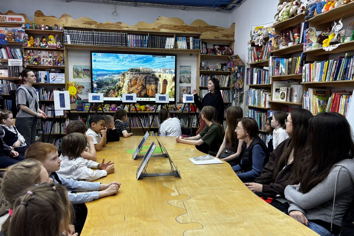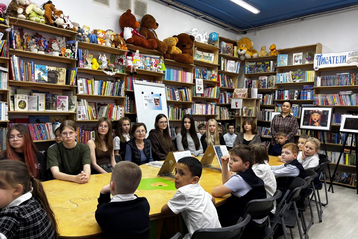 Куратор выставки Катерина Мегидь подробно рассказала о концепции экспозиции, о том, как художественная выставка встраивается в пространство библиотеки. Вместе с ребятами она обсудила понятия образ и персональная выставка, а также познакомила с разными техниками в графике. «Прошлое открывает путь к истокам, следуя которому автор формирует более целостное восприятие себя», — отметила координатор выставки.