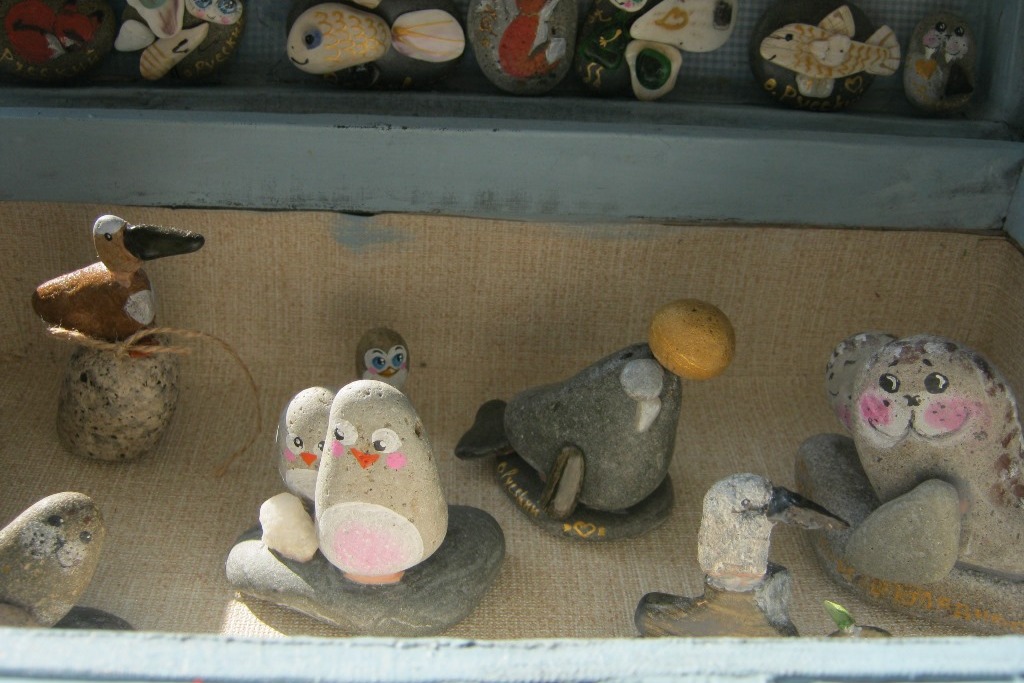 Елена владеет искусством создавать не только сложные, но и простые, минималистичные вещи. Лисички, нерпы, пингвины, склеенные из пары морских камней и стекол, выглядят очень естественно, живо и просто. А это признак автора с безупречным вкусом. И широким взглядом на творчество. Вылазки в бухты за морскими находками не мешают другим занятиям мастерицы. Елена также продолжает работать с тканью, шьет костюмы для косплееров и порой сама выходит на сцену – показать созданный образ. Крафт, то есть бутафорский реквизит для образов в косплей, делает старшая дочка Елены. Благодаря ее талантливой руке, у кукол и каменных зверюшек прелестные выразительные лица и мордочки.