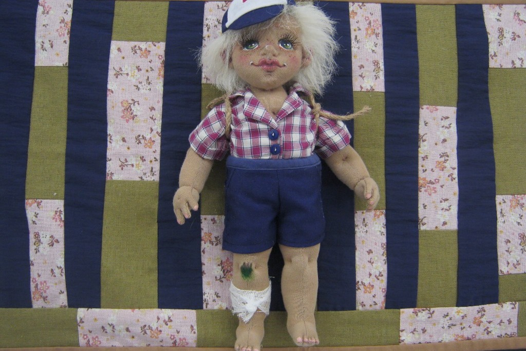 Я когда-то увидела в детском зале библиотеки книжку «Речка, речка, где твой дом?» (автор Анастасия Орлова, иллюстрации Игоря Олейникова), там на титульной странице нарисована девочка. Такая характерная, такая интересная. Я сразу захотела сделать такую куклу. Но она у меня не получилась бы на тот момент, затянулась бы работа, там вышивки очень много, а с вышивкой у меня пока еще не очень, скажем так. Но именно вот эта девочка меня подвигла на создание кукол. И я стала пробовать. Сначала не очень получалось. Первых кукол я младшей дочке Алиске отдавала. Но когда что-то начинаешь делать – начинаешь развиваться. Мне вот чтоб сделать одну куклу – надо перерыть кучу литературы.