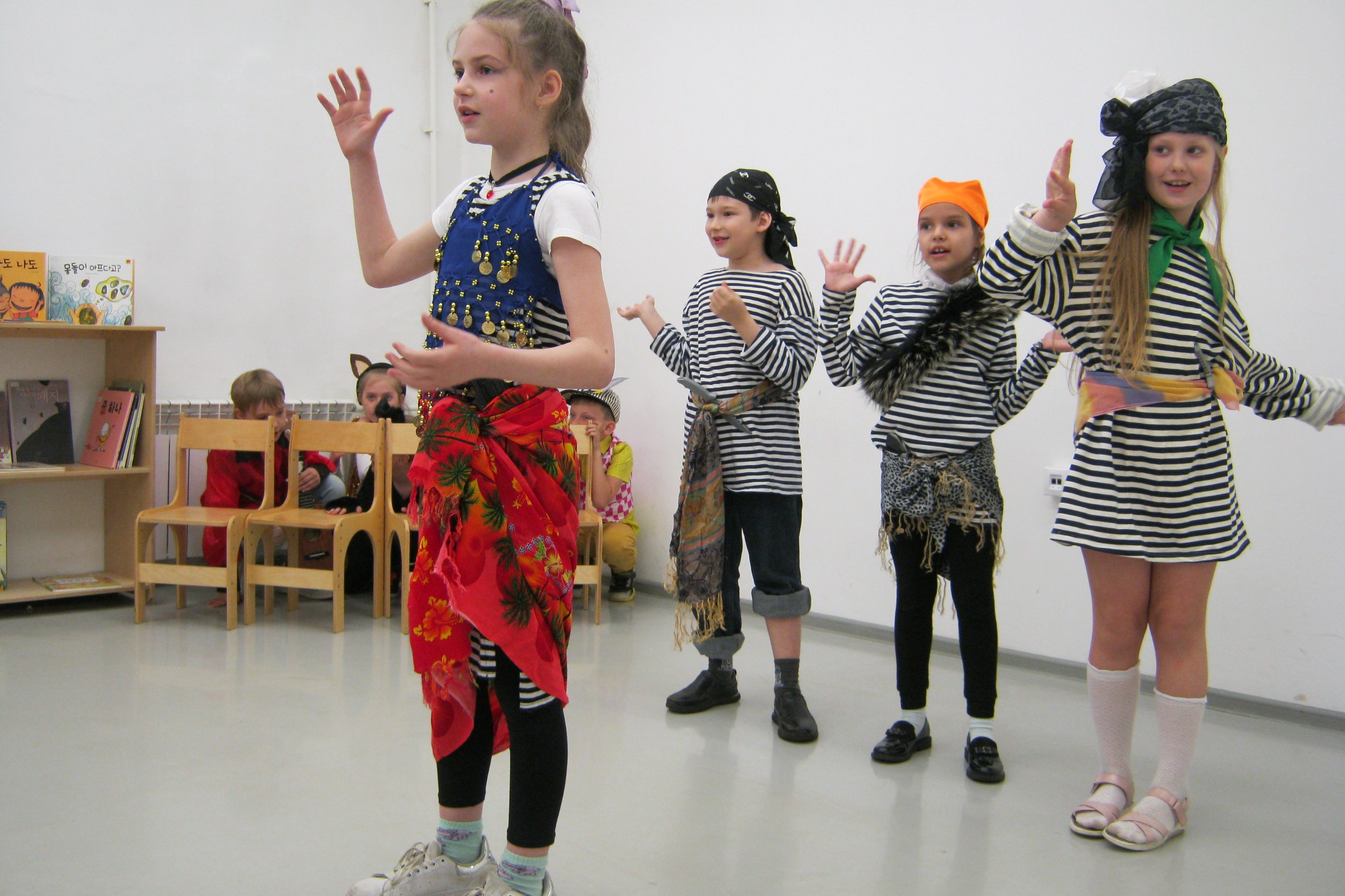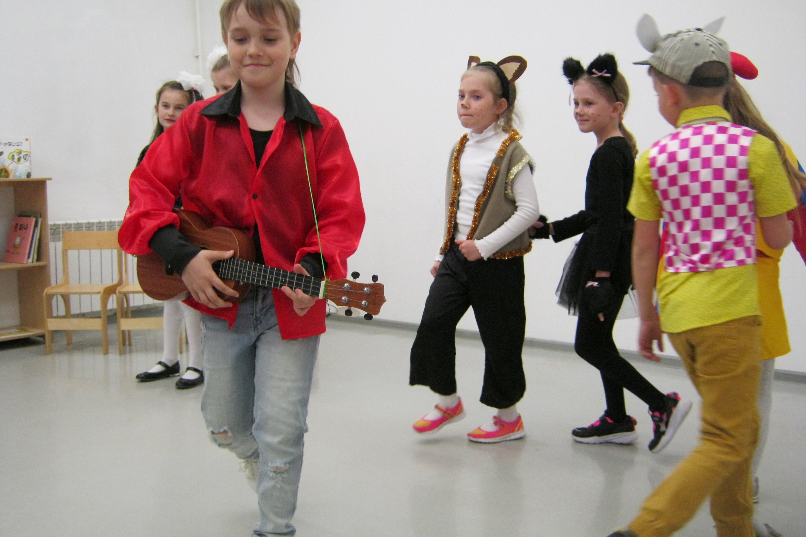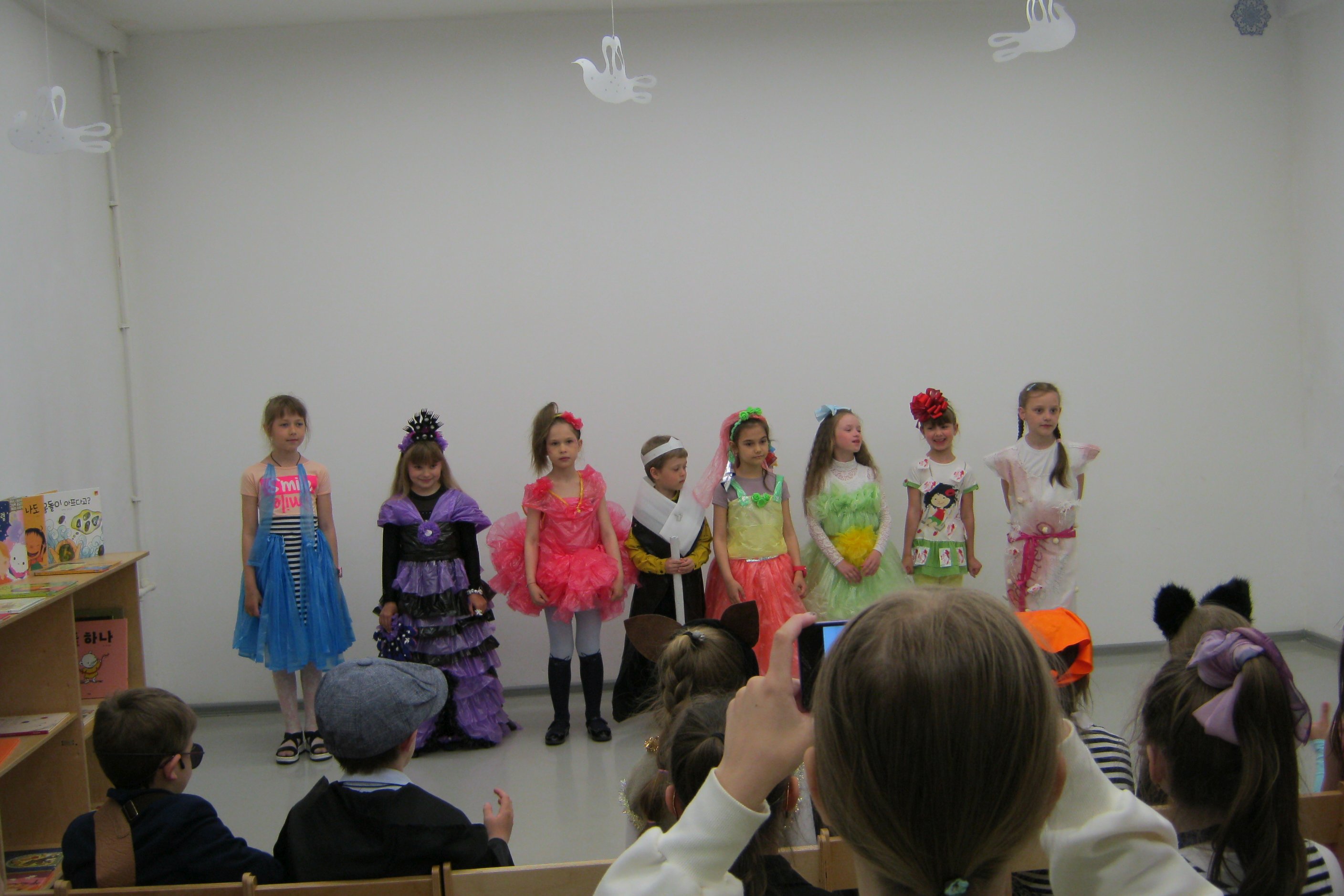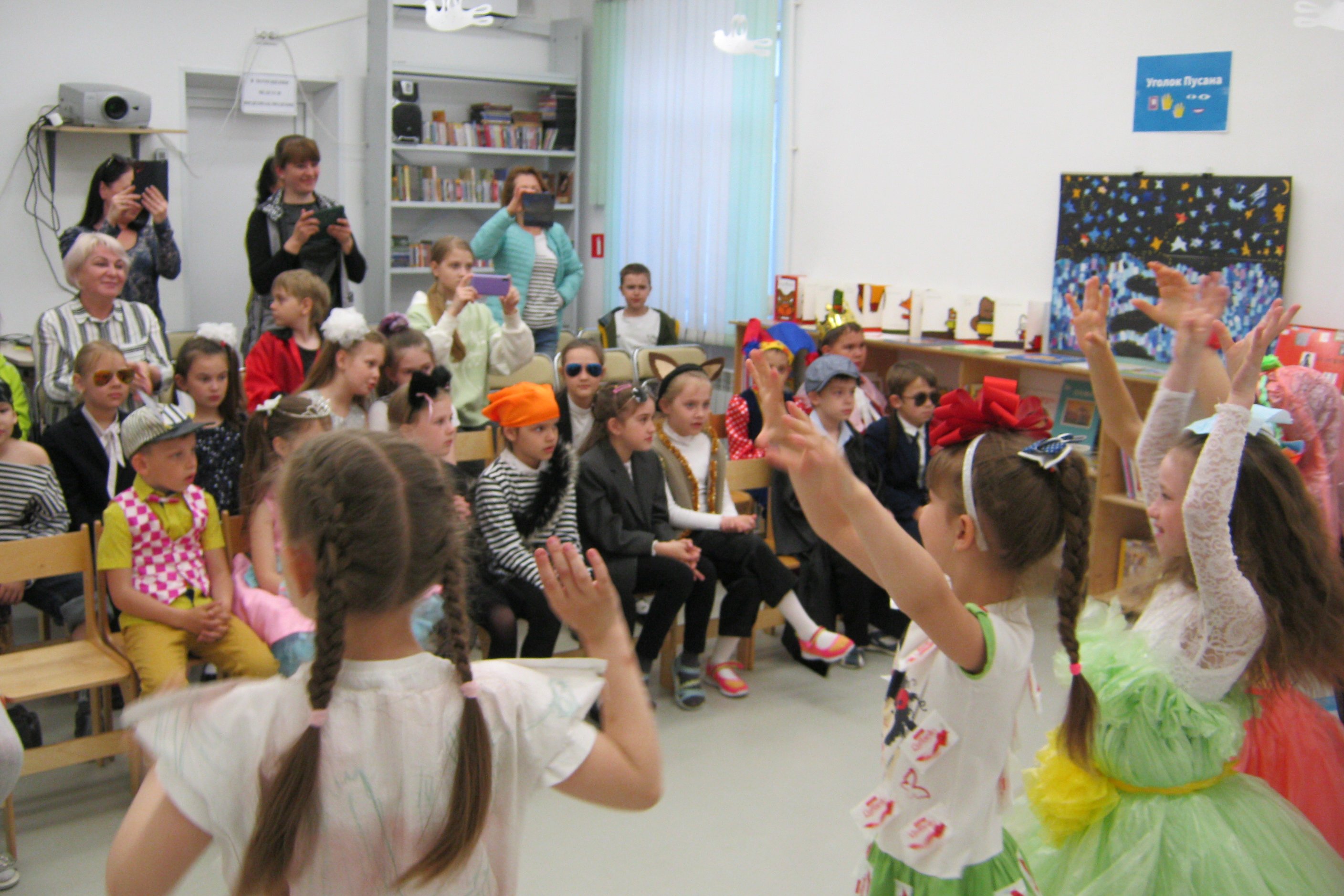 После модного шоу артисты «Цветных ладошек» показали свой хит – спектакль «Бременские музыканты». Премьера спектакля состоялась в библиотеке около месяца назад, а 12 мая историю про «бедную трубадурочку» и находчивых бродяг смогли посмотреть те взрослые, у кого не было возможности посетить выступление «Цветных ладошек» ранее и одноклассники артистов.