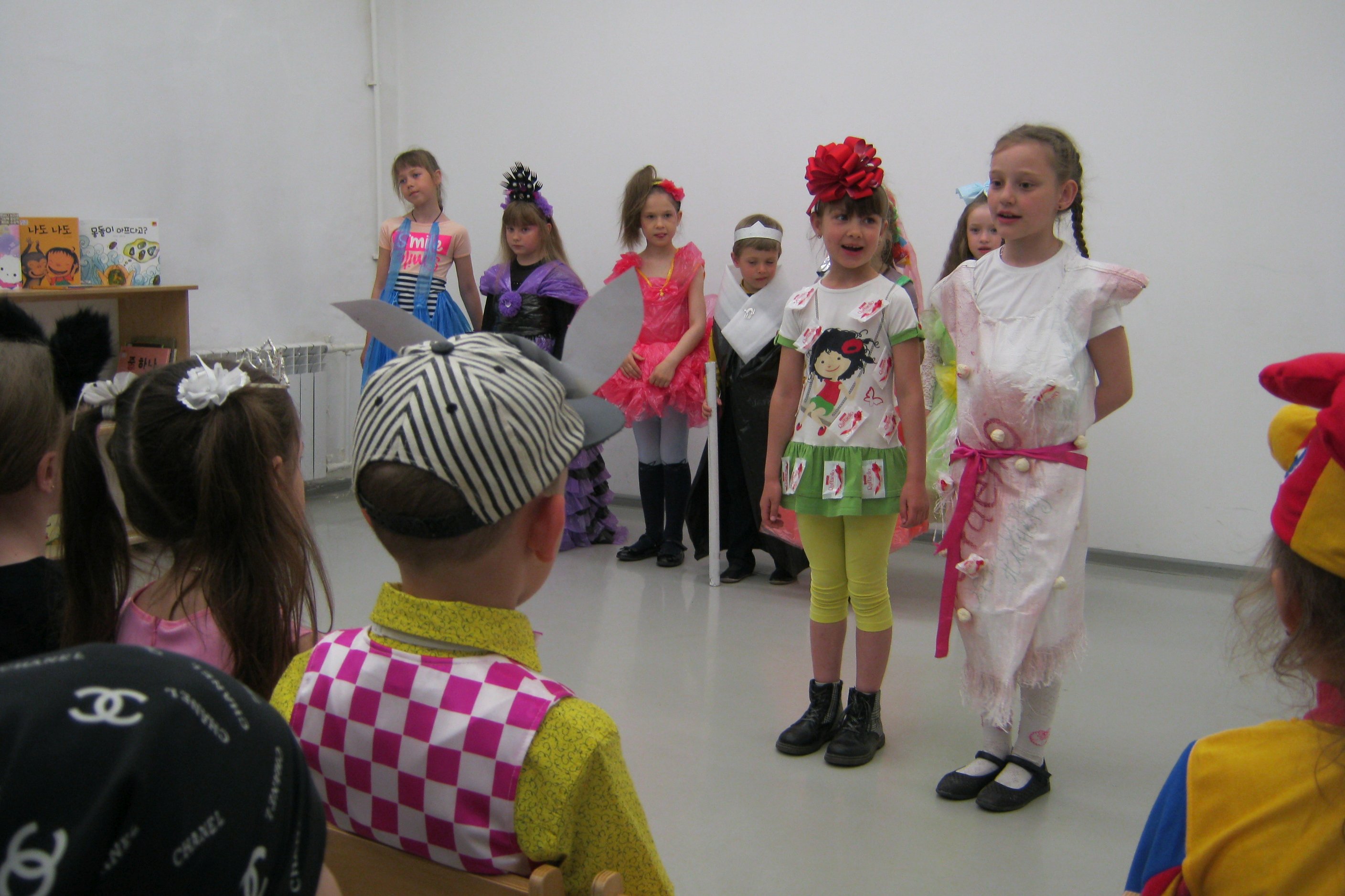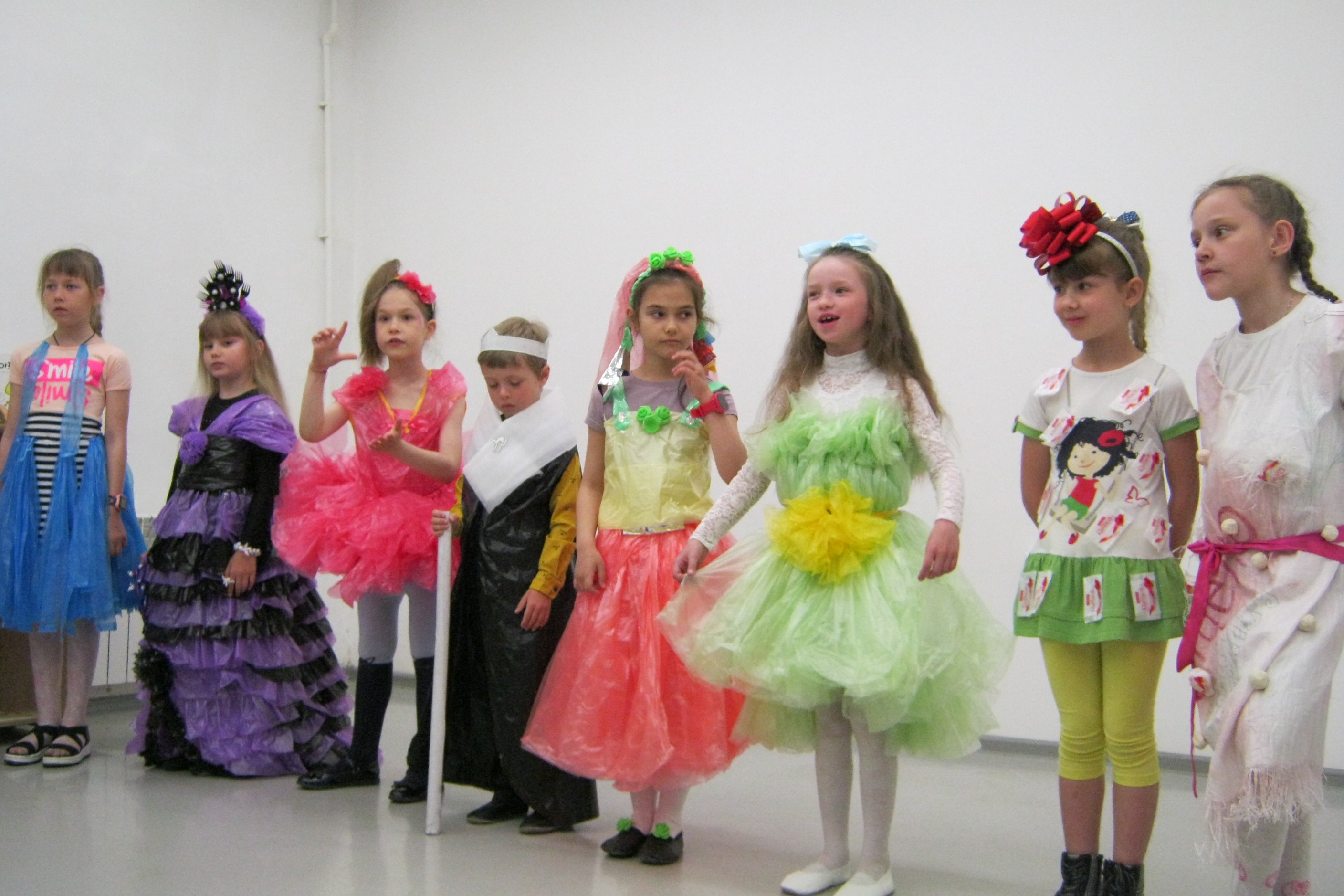 Продолжается сотрудничество библиотеки №8, центра развития творчества детства и юношества и детского развивающего центра «Цветные ладошки». 12 мая детвора из театра «Апельсин» при ЦРТДиЮ показала гостям библиотеки дефиле модной одежды «Мусор-шоу». В принципе, из названия дефиле понятно, что одежда большей частью была сделана из полиэтилена – то есть того материала, что везде мозолит глаза: на городских улицах, под деревьями в пригороде, на морском берегу. Руководитель театра Марина Попова объяснила выбор темы коллекции актуальностью проблемы утилизации мусора.