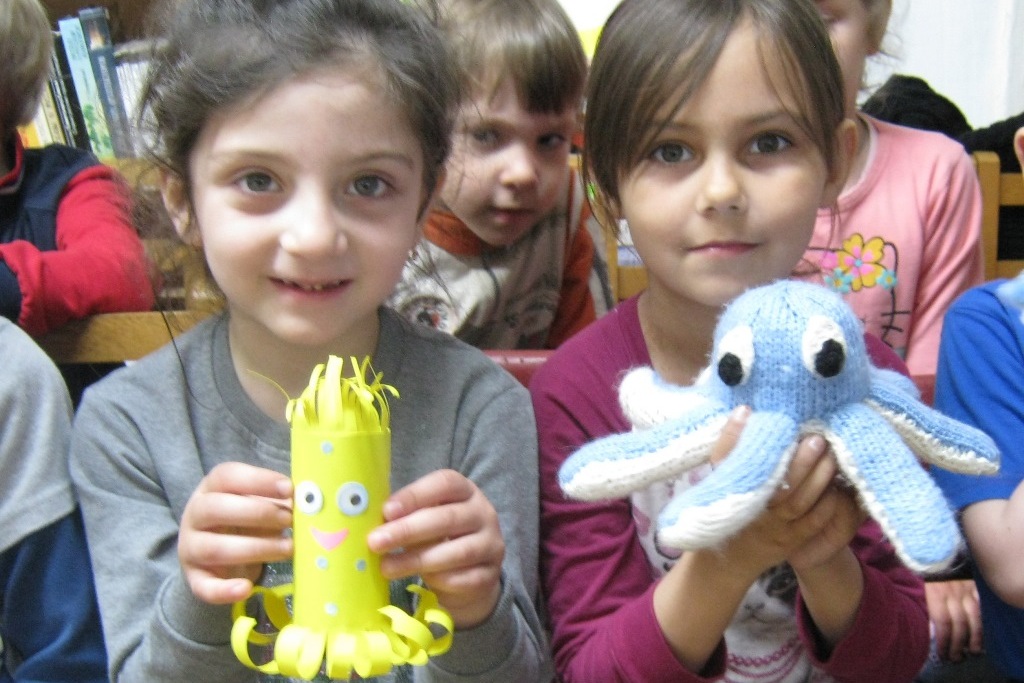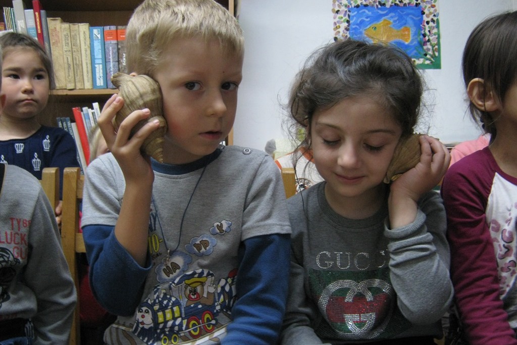 Детям показали, какие украшения делают из кораллов и ракушек, как растет жемчуг и сколько еще сокровищ таит в себе Мировой океан. В конце беседы детей познакомили с литературой о подводном мире и его обитателях и показали мультфильм «Осьминожки» по стихотворению Эдуарда Успенского «Разноцветная семейка».