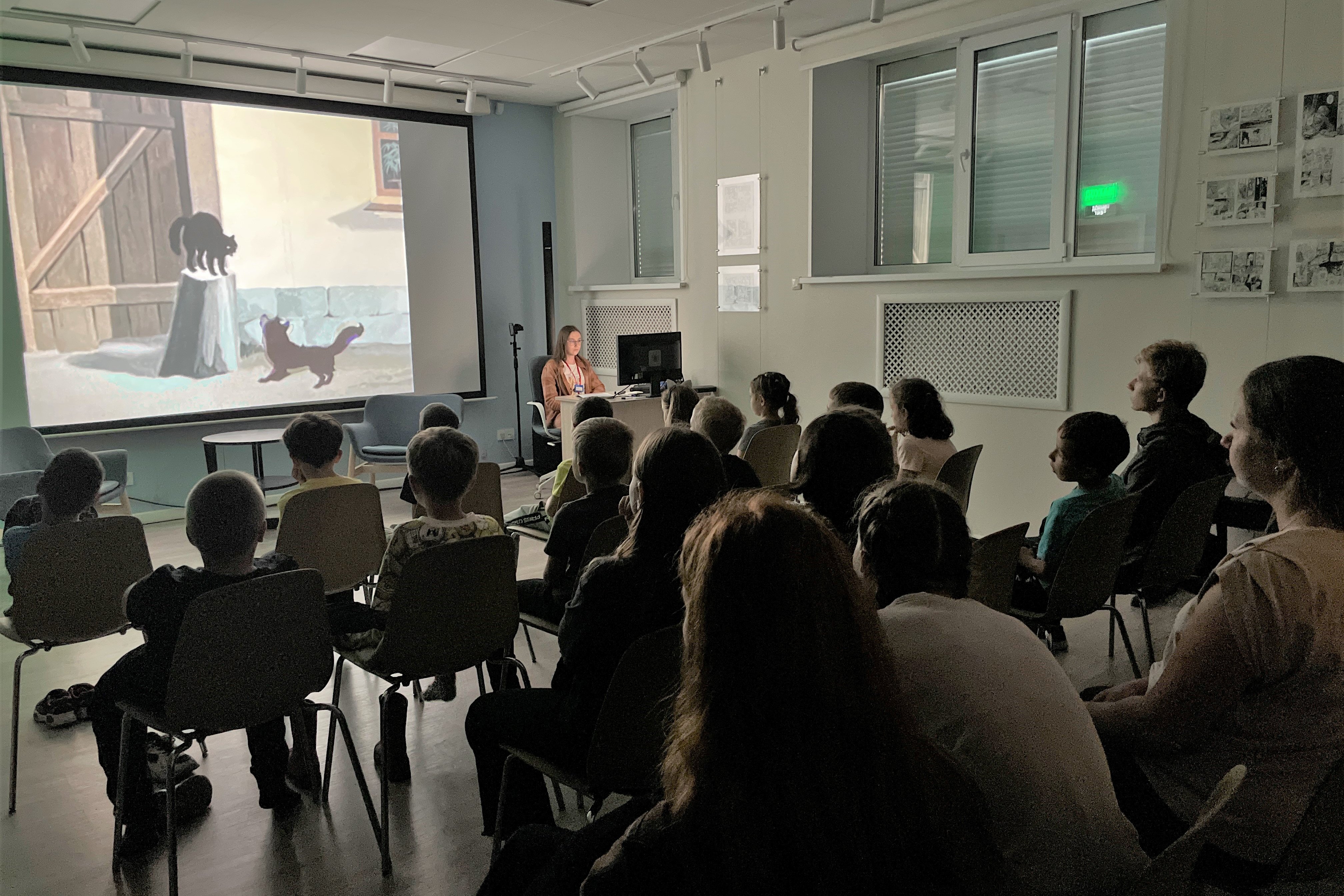 7 июля центральная библиотека им. А.П. Чехова, модернизированная в рамках национального проекта «Культура», превратилась в самый настоящий кинотеатр. Ребятам из пришкольного лагеря школы №52 показали мультфильм по одноименному рассказу А. П. Чехова «Каштанка», снятый в 1952 году.