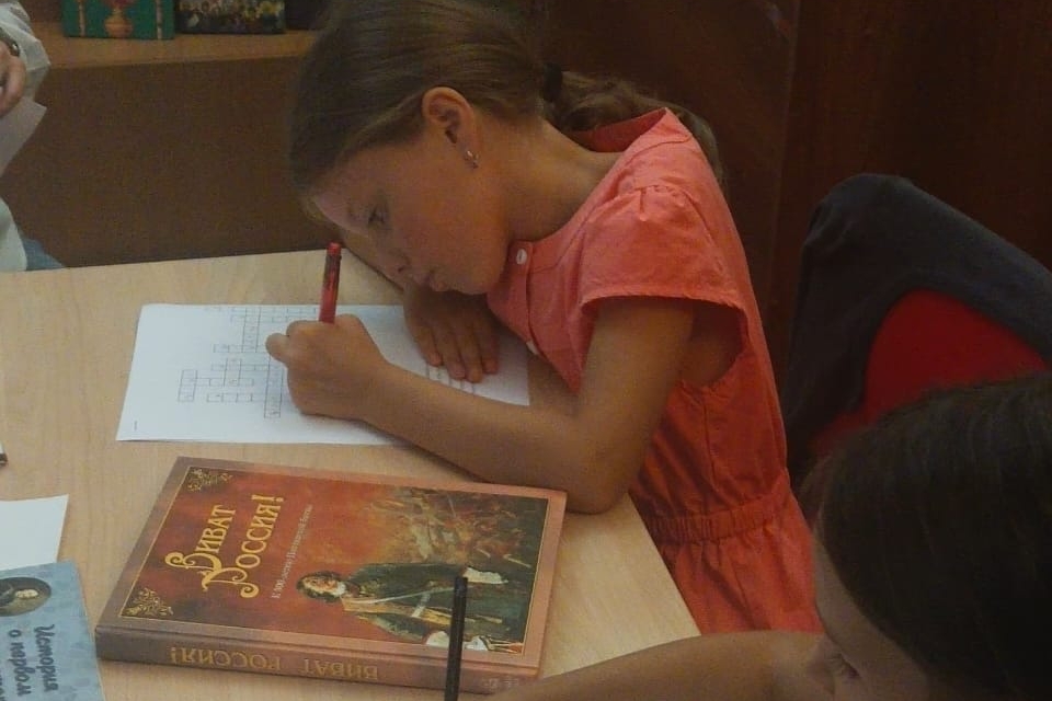 Для ребят были подготовлены тематические кроссворды, а решить их помогла не только информация с мероприятия, но и книжная выставка о Петре Первом: «Рассказы о Петре Первом, Нарве и делах воинских» Сергея Алексеева, иллюстрированный словарь «Эпоха Петра I» серии «Белый город», «Якоря на пьедесталах» Аркадия Векслера, История о первом императоре Натальи Астаховой и др.