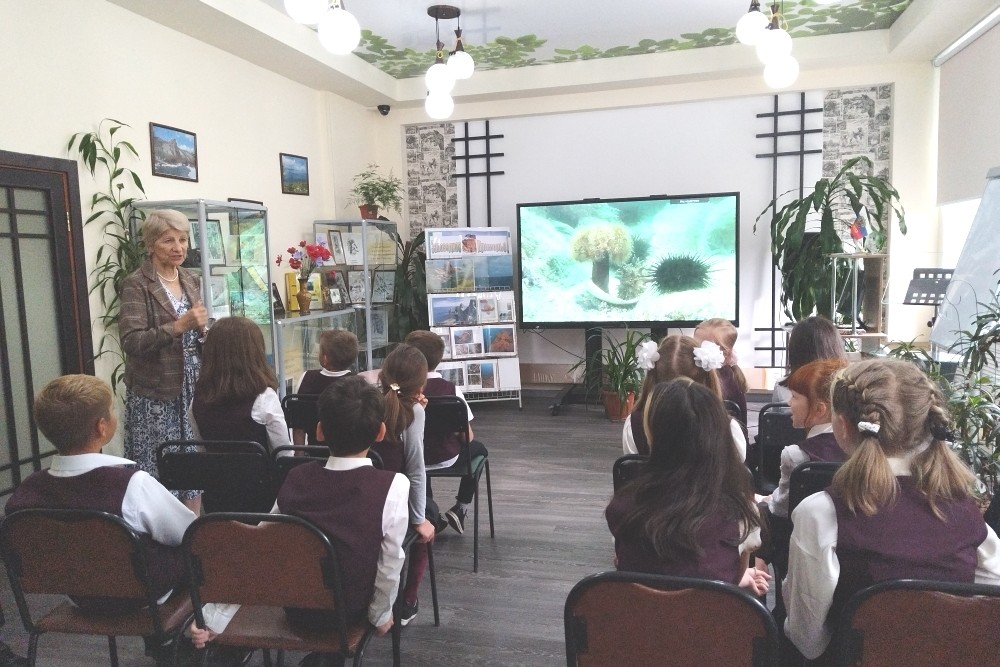 13 сентября библиотека № 11 им. И.У. Басаргина организовала для учащихся 4 «Б» класса МБОУ СОШ № 57 виртуальное путешествие по заповедным местам Приморья. Они узнали, почему наш край – одно из уникальнейших мест на земном шаре: ледники остановились, не дойдя до границ современного Приморья. Ребята посмотрели фильм о Дальневосточном биосферном морском заповеднике и узнали, когда и почему на карте Приморья появилось имя финна Йохана Фуругельма. Фильм дополнила книжная выставка с красочными иллюстрациями – видами парусных судов и картинами побережий.