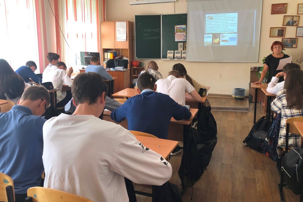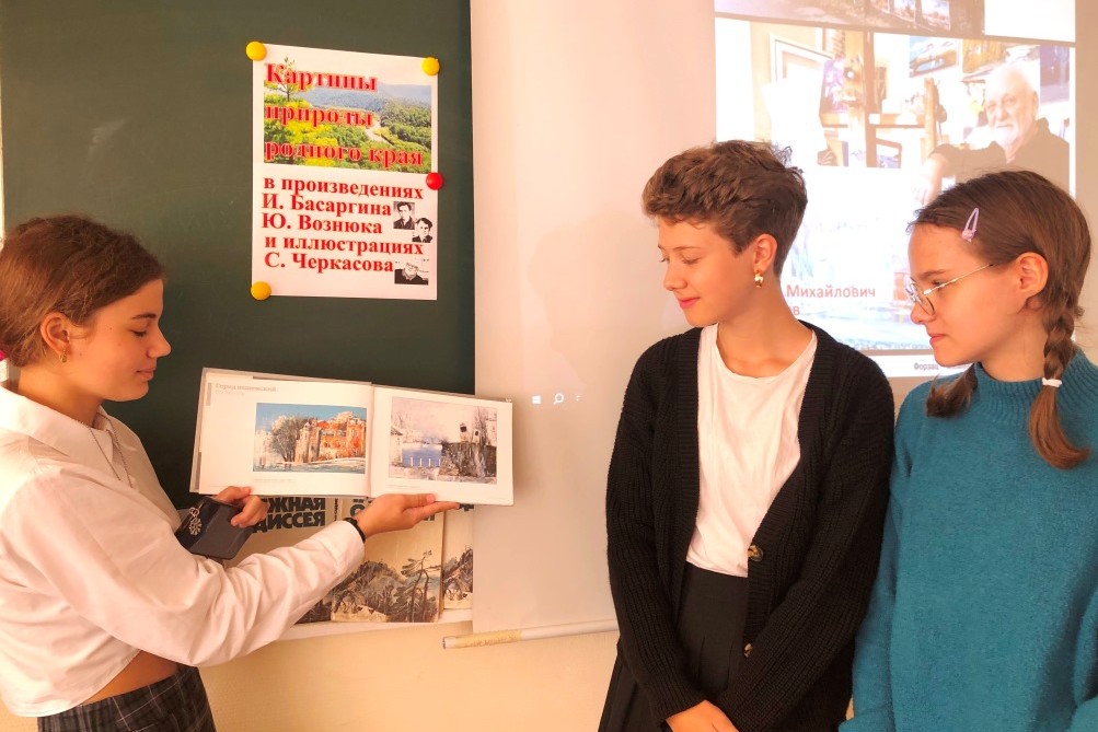 15 сентября в трёх восьмых классах МБОУ «СОШ № 64» прошли занятия, посвящённые 50-летию со времени выхода в Дальневосточном книжном издательстве повести Ю.В. Вознюка «Таёжная одиссея», а также замечательному художнику, создавшему иллюстрации к этой книге – С.М. Черкасову и таёжным рассказам писателя, имя которого носит библиотека – И.У. Басаргину.