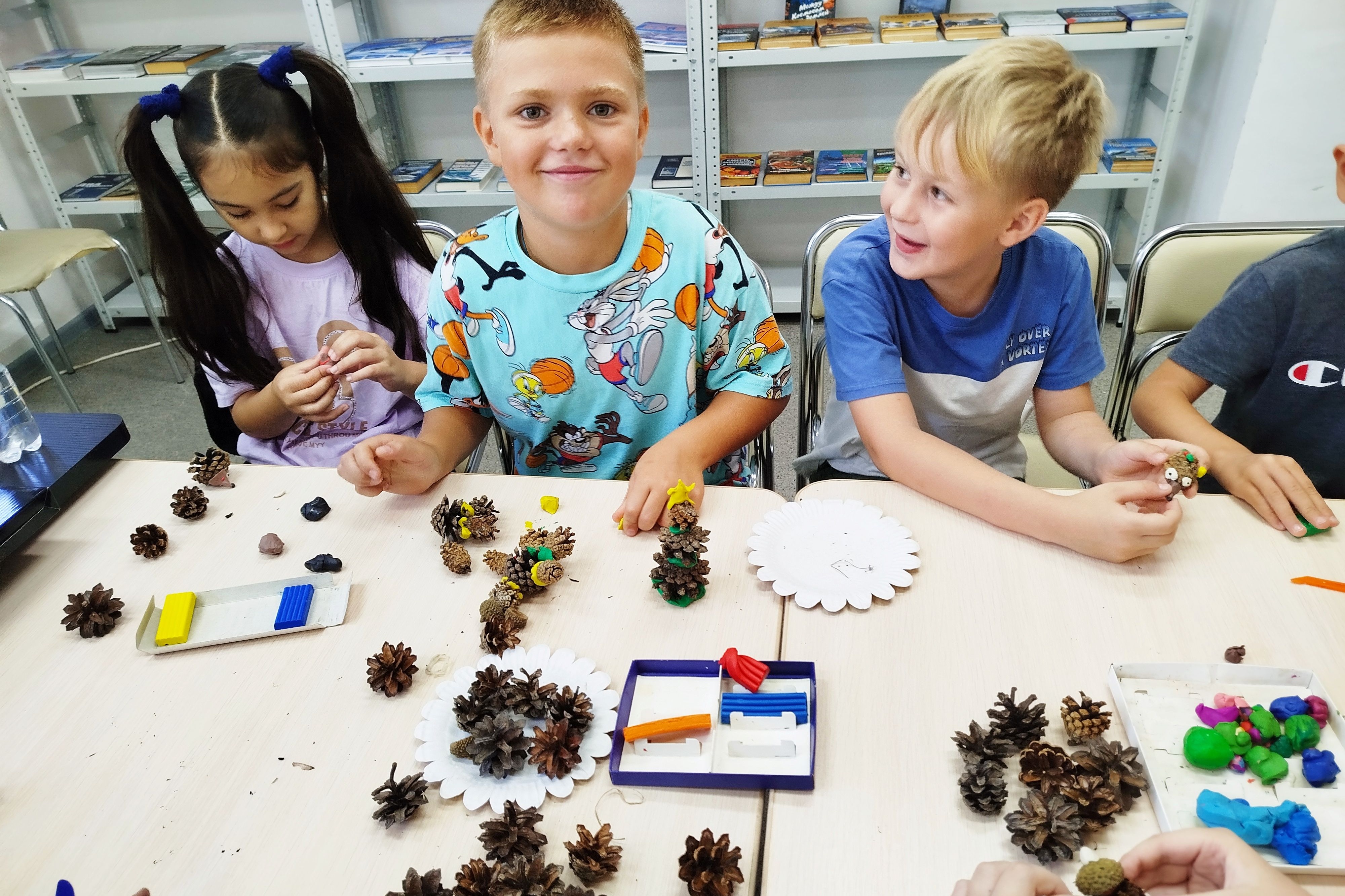 Мастер – класс «Зверюшки из шишек» оказался для детей как всегда увлекательным и своевременным. Ведь осень – время ярких красок и удивительных превращений, когда обычные шишки, желуди, сухие листья и многое другое, что можно найти в лесу, в детских руках чудесным образом превращается в различные поделки. На этот раз библиотека пригласила ребят школы продленного дня «Эрудит. Шишки – самый доступный и экологический материал для идей, который легко найти даже в городе. Школьникам предложили пофантазировать и смастерить из шишек лесных зверюшек: лису, белку, совят, ёжика и других, тем самым продлить жизнь природному материалу. Мастер – класс помог ребятам погрузиться в увлекательный мир творчества и получить заряд бодрости и хорошего настроения. Сделанные руками детей зверюшки, остались на выставке поделок, где их сможет увидеть каждый читатель библиотеки.