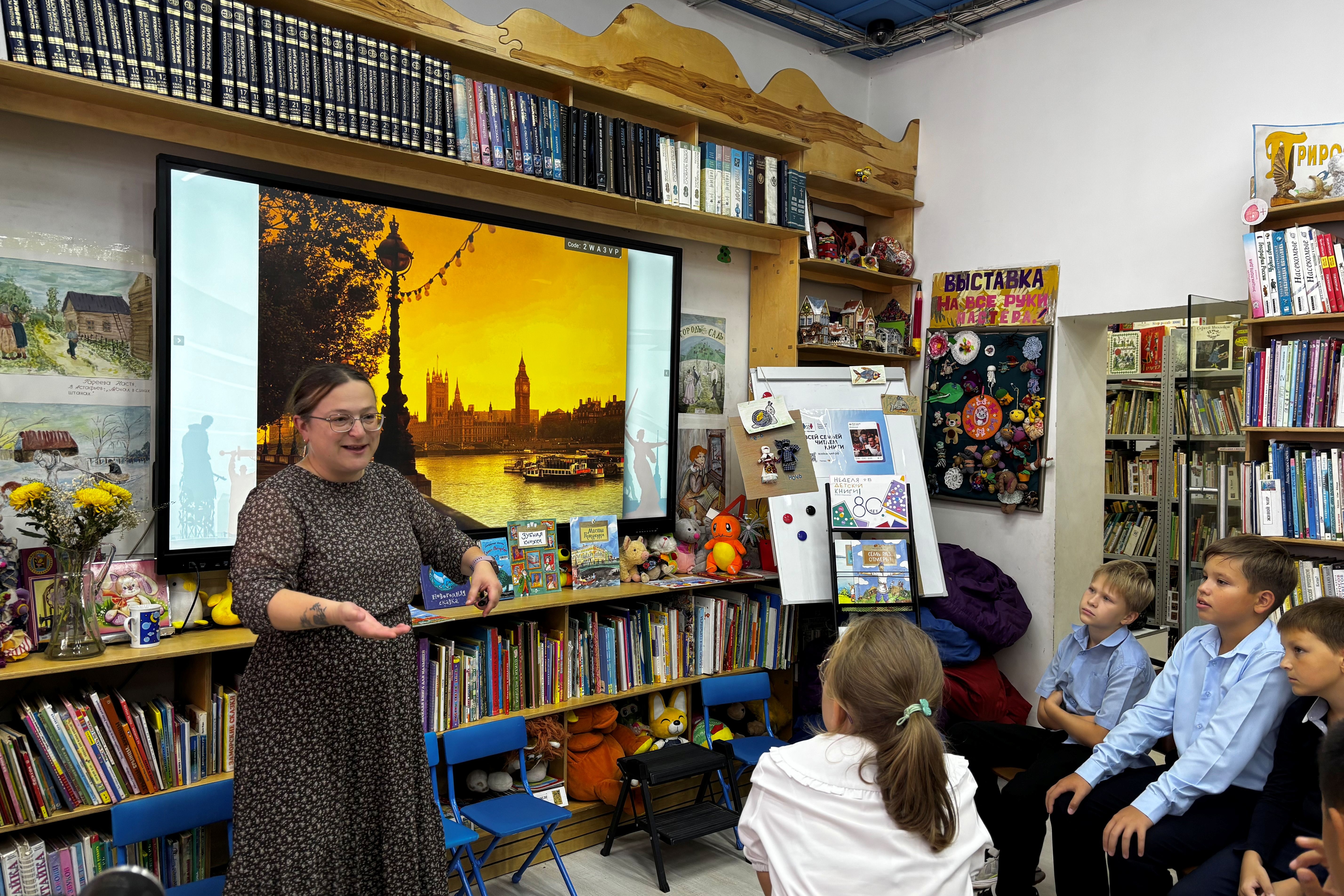 Мероприятие началось не с традиционной лекции, а с живого и непосредственного общения. С первых секунд Хельга установила мостик доверия с юными слушателями – учениками 4 «Г» и 3 «В» классов школы № 74, и ее характер проявился сразу в полной мере: энергичная, позитивная, невероятно увлеченная своим делом и по-настоящему «вездесущая» — в том смысле, что ее внимание и интерес успевали уделить каждому ребенку в библиотеке.