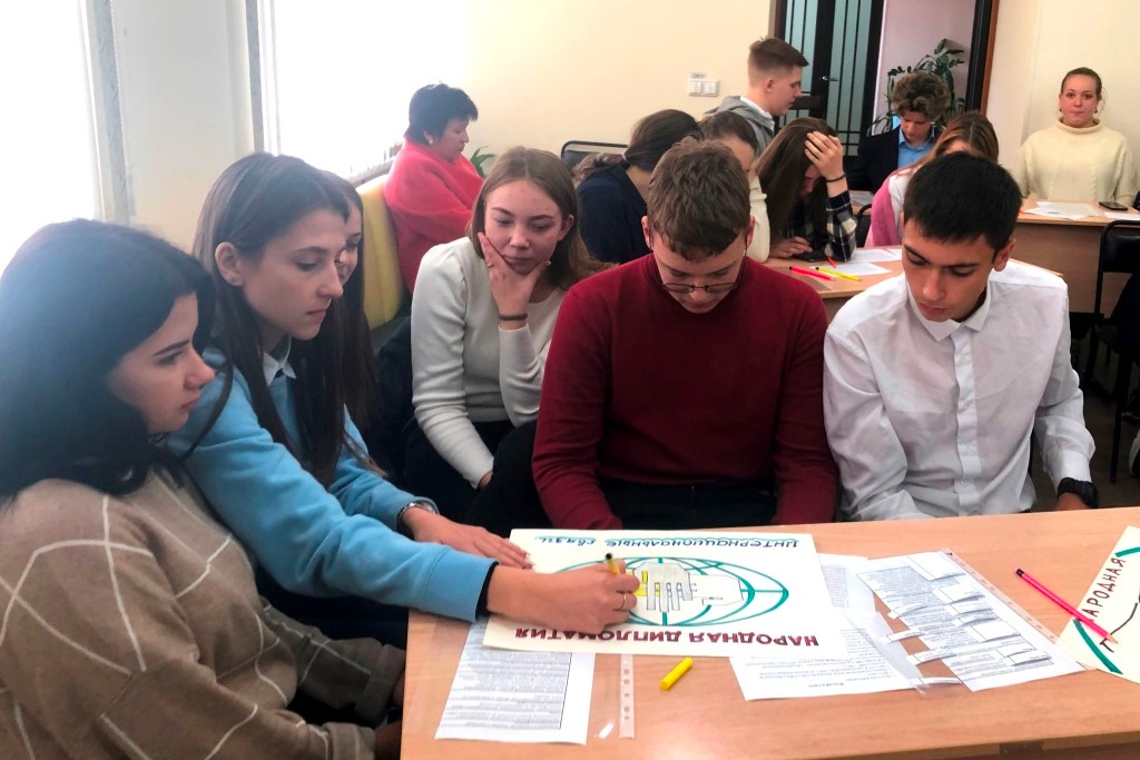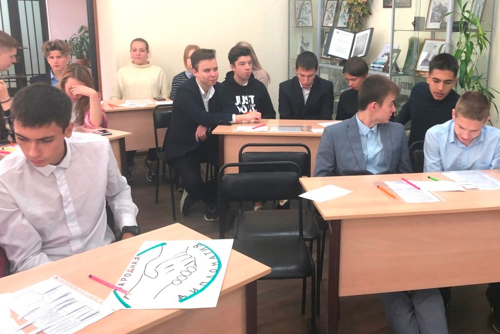 В заключение занятия был проведён буквенный диктант, в котором ученики отметили лишь первые буквы выбранных ответов, что позволило в итоге получить ответ на вопрос о городе, который ещё в 1961 г. стал участником Всемирной федерации породнённых городов, подписав первый в истории российско-японских отношений договор о дружбе и сотрудничестве.
